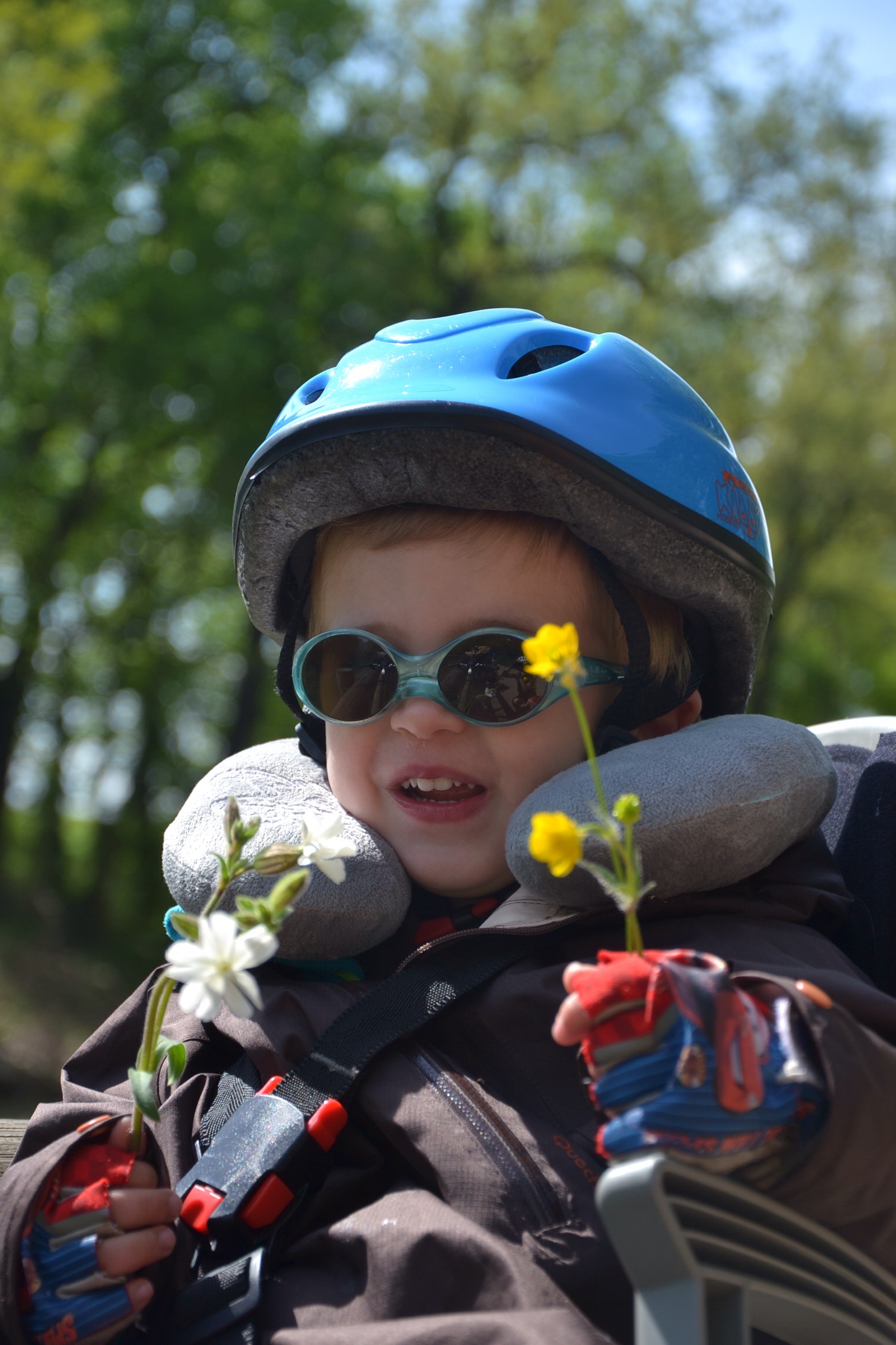 Quentin craque un peu et il finit la journée fièrement tiré par son Papa. Baptiste met un point d’honneur à ne rien lâcher et nous devons freiner ses ardeurs sur ce chemin si proche de l’eau!