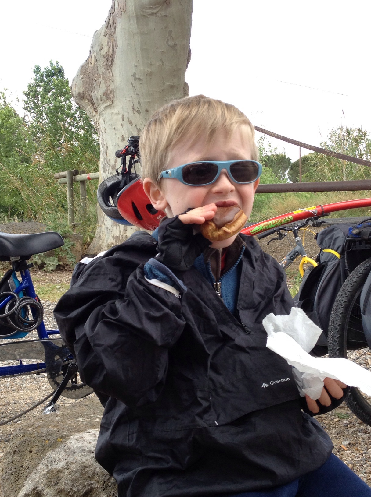 Nous profitons de l’enthousiasme des ti-gars pour ajouter une petite escapade dans un village voisin, escapade largement récompensée par un pique-nique amelioré!