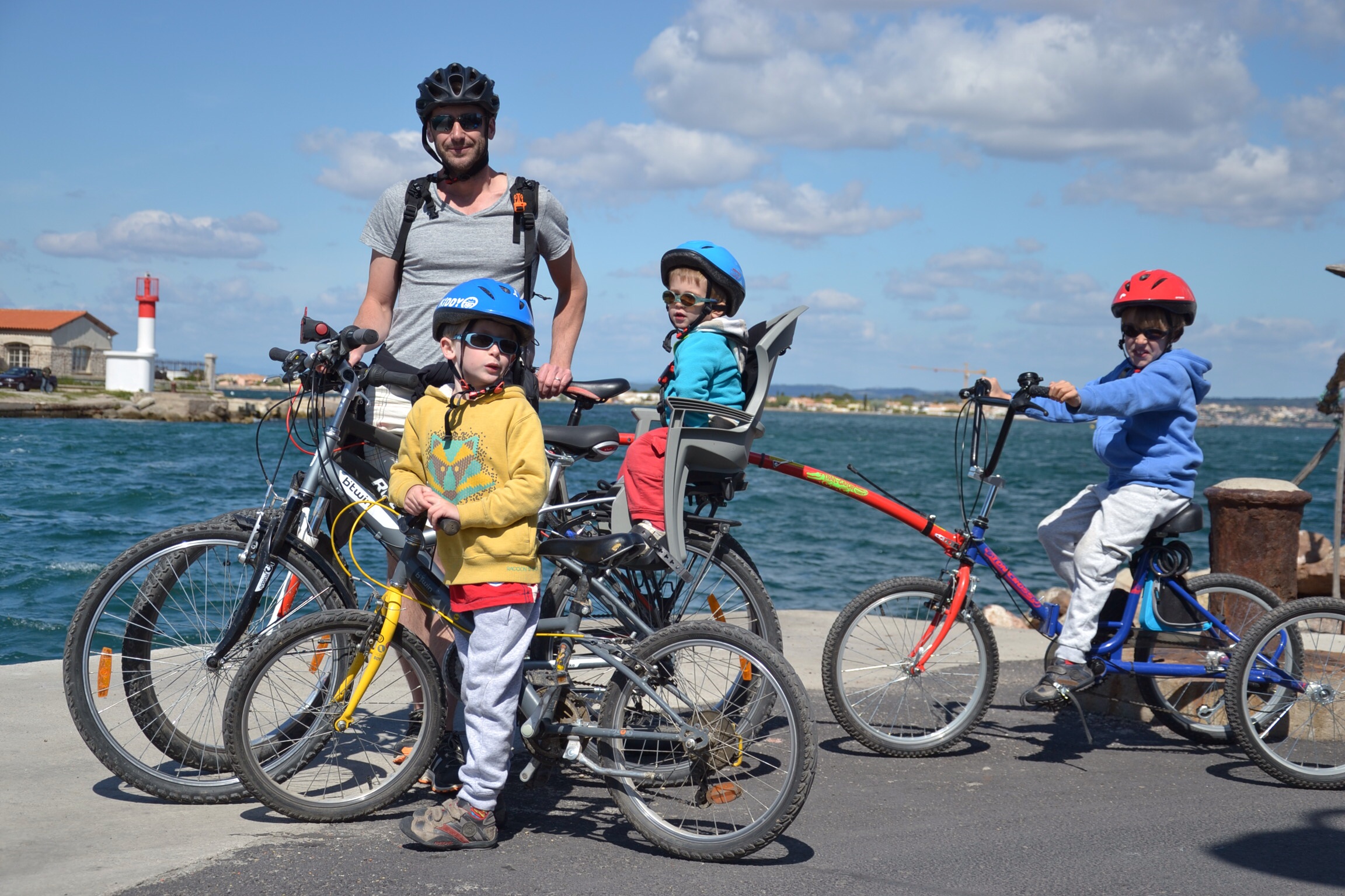 C’est donc parti pour la visite de Sète à roulettes, l’occasion de frotter les roulettes aux nombreuses, trop nombreuses voitures. Les ti-gars sont très attentifs et nous avons le plaisir de trouver de nombreuses pistes cyclables.