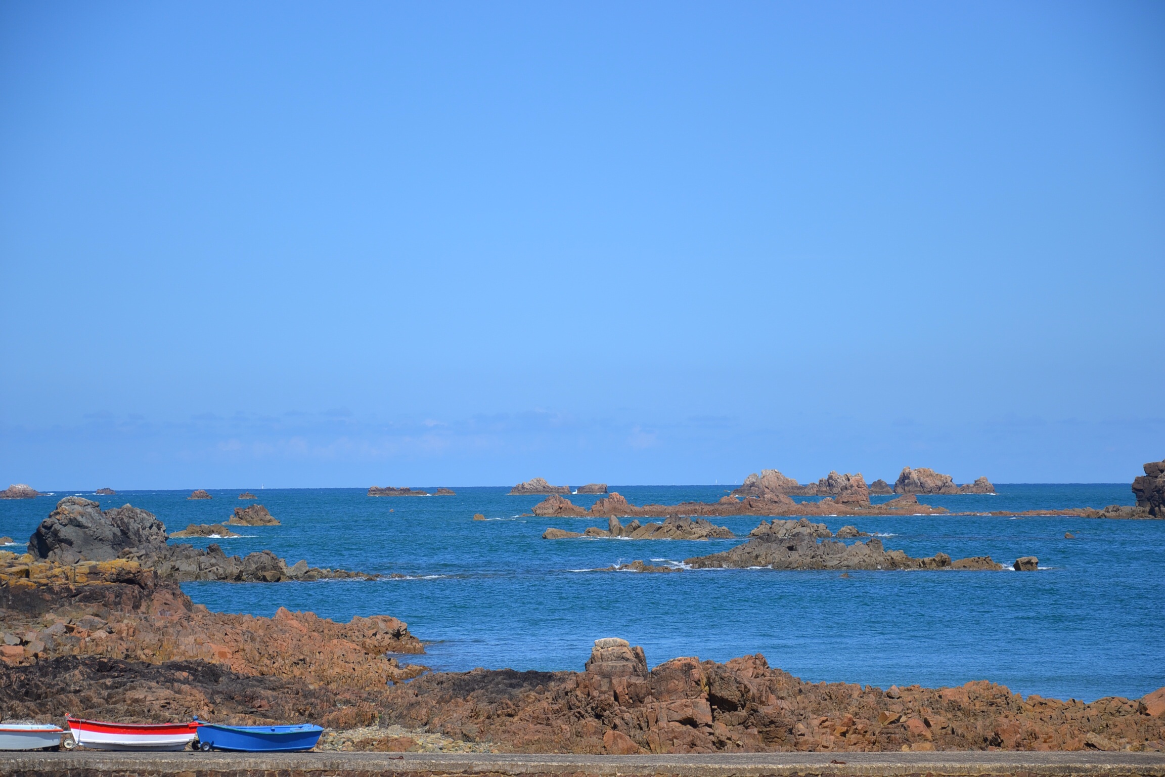 Falaises qu’il a fallu mériter à la force des mollets, falaises de grès rosé qui s’élèvent à 70m au-dessus de la mer.