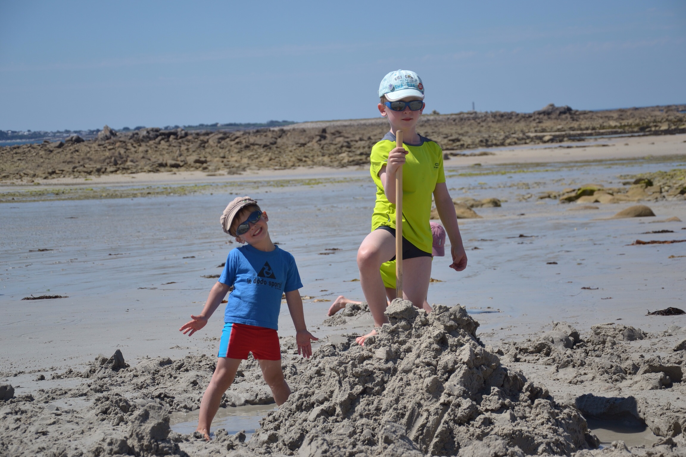 Waouh encore une belle plage! (Quentin, Baptiste et Matthieu impatients de construire un nouveau château qui sera détruit par la marée!)