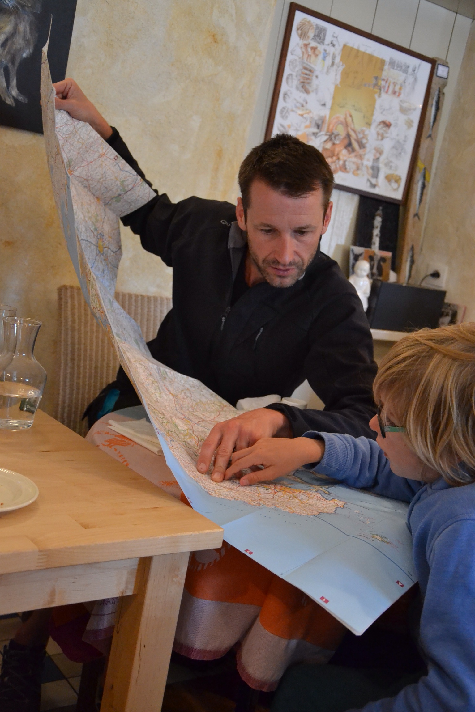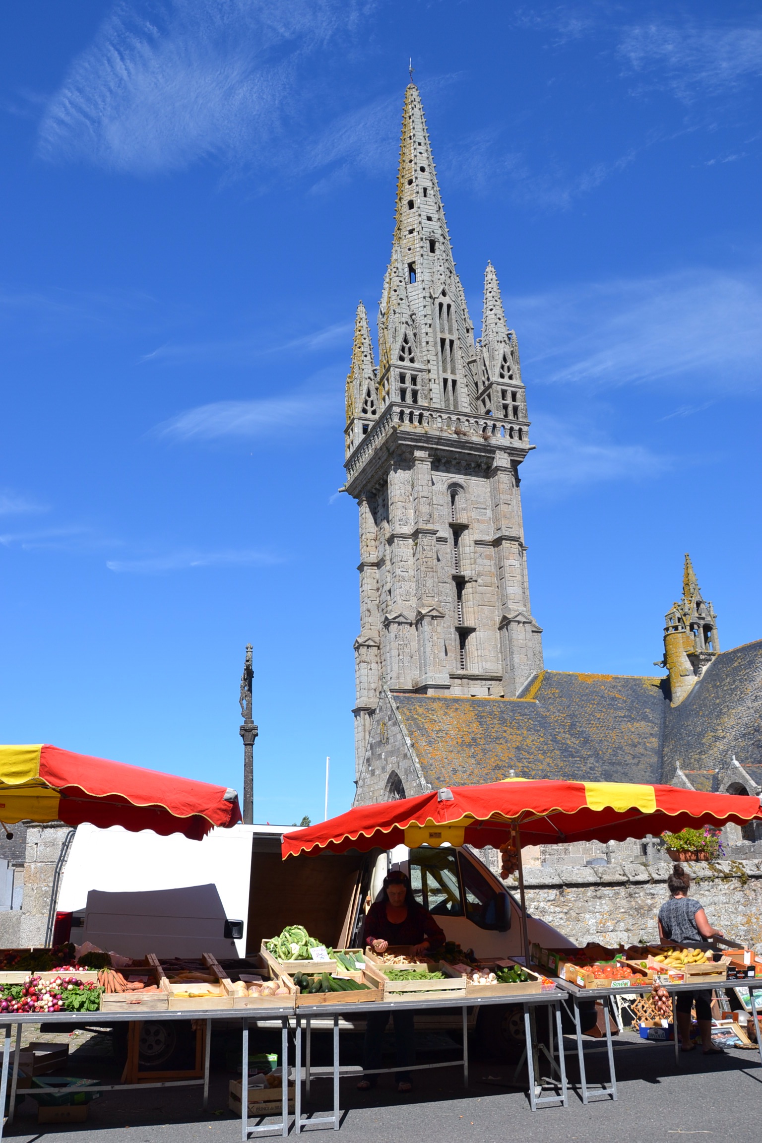 Avec le prétexte d’une petite pluie en fin de nuit, nous avons remplacé le traditionnel rillettes-saucisson par un déjeuner sur la place de Lannilis.