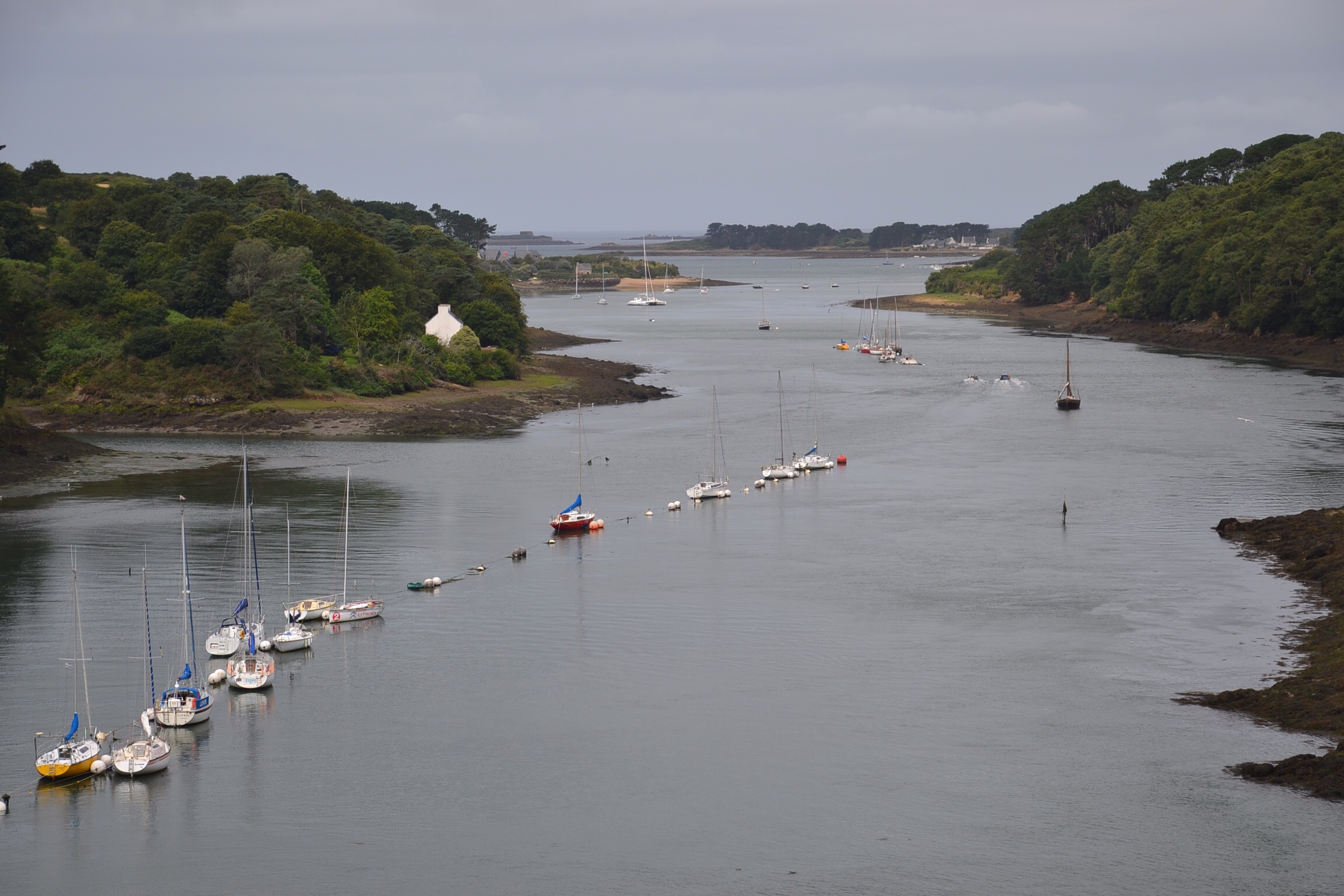 Nous fûmes punis de notre insolence par une petite averse sur le pont de l’Aber-Benoît.