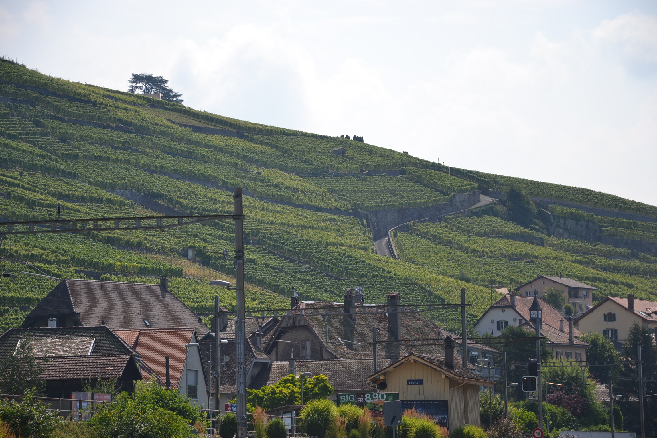 Promenade bucolique à peine perturbée par un hélicoptère-épandeur au-dessus des immenses vignes sur les coteaux entre Lausanne et Vevey.