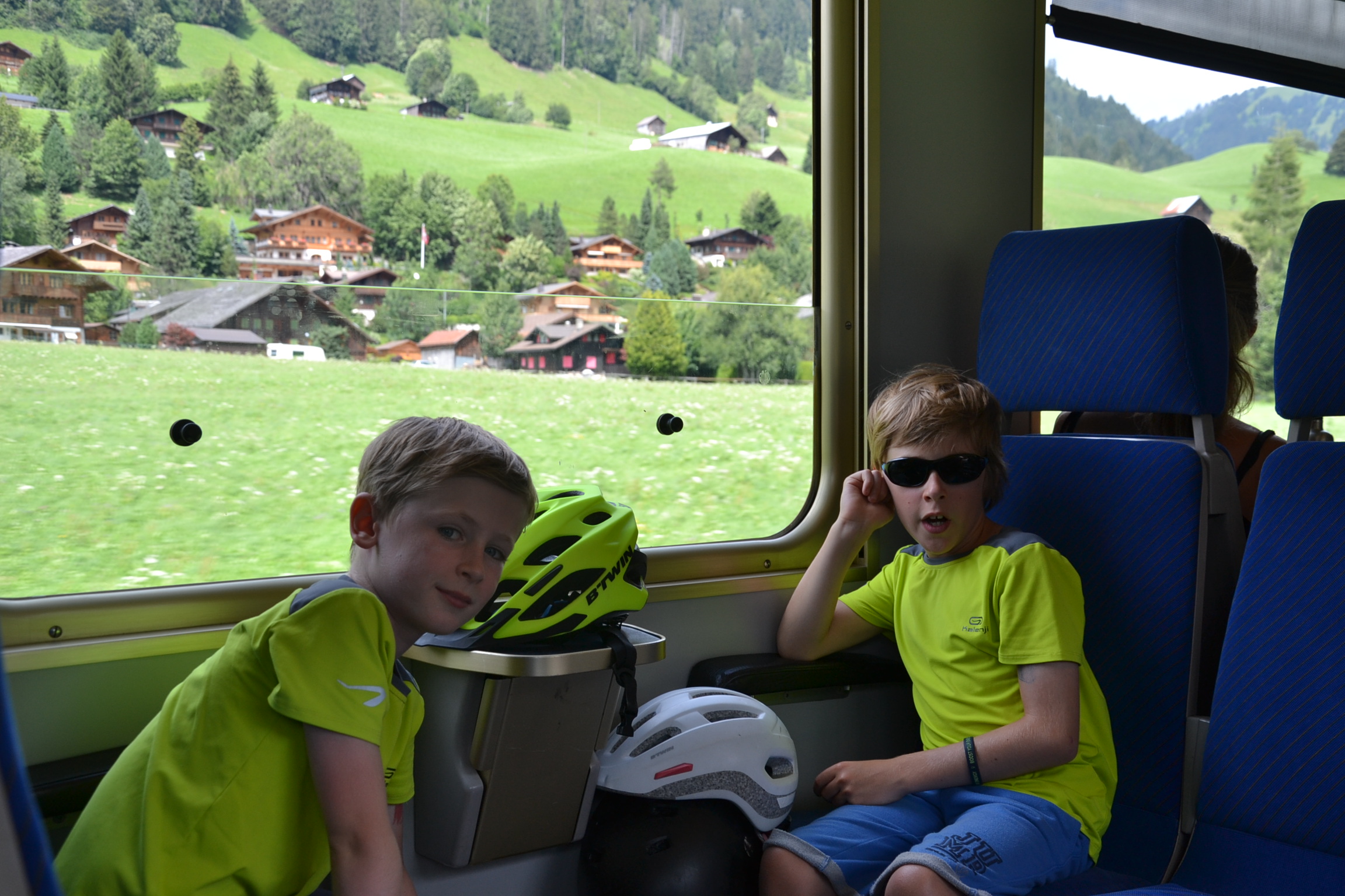 Nous avons fini par céder aux suppliques de nos jeunes cyclistes et après avoir consulté pour la énième fois le topo, direction la gare de Château d’Oex!