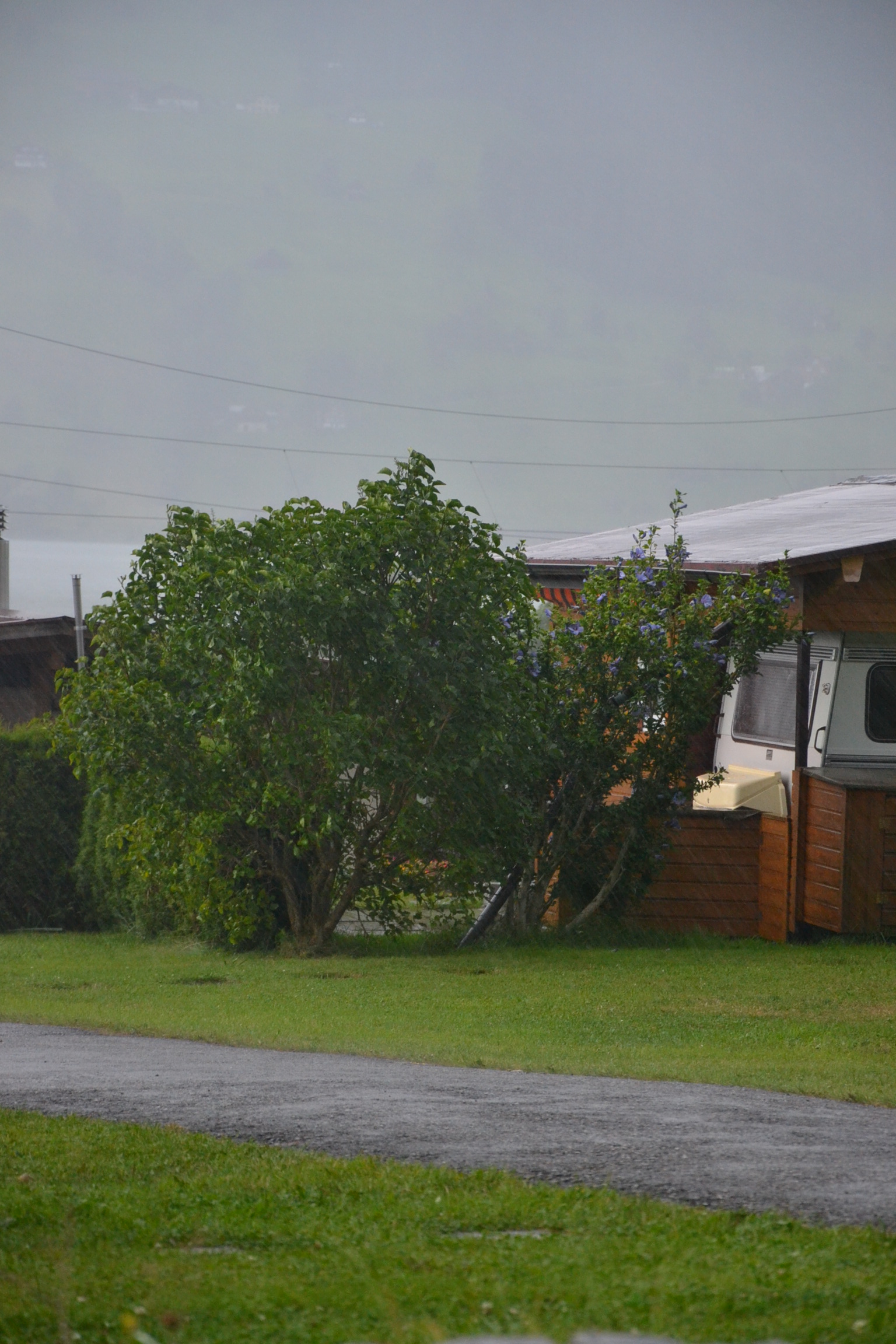un grain, le beau temps pour la fin de la route et arrivée au camping où un orage éclatât.