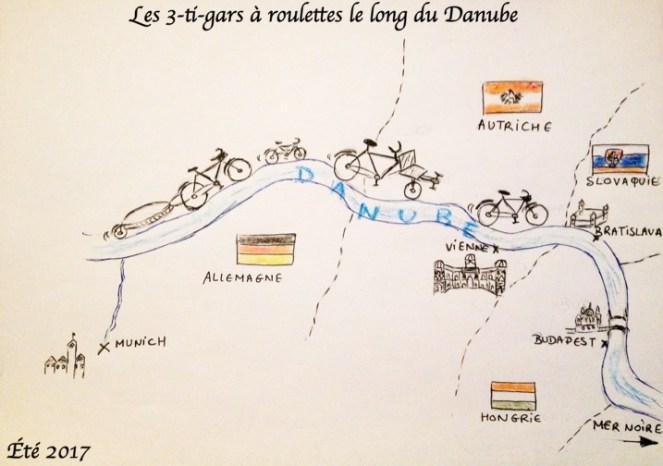 Donau, Dunaj, Duna, Dunav, Дунав, Dunărea, nous allons longer, traverser, franchir ce long fleuve qui s’écoule d’Ouest en Est et nous fera découvrir pas moins de 4 pays.