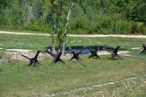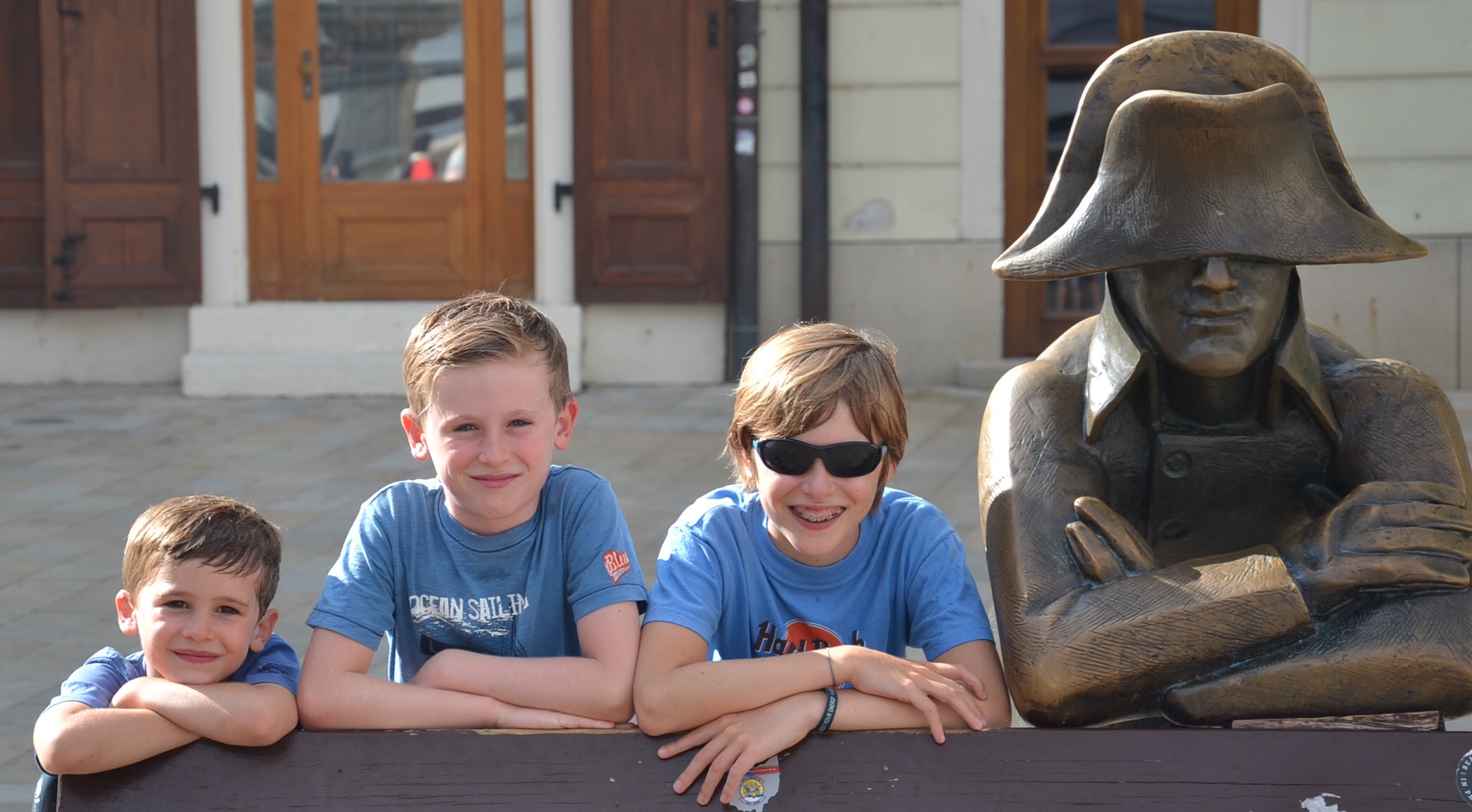 Loin d’être aussi champêtre que notre précédent passage de frontière, le franchissement de cette ligne fut empreint d’un symbole fort. Alors que nous n’étions pas plus vieux que les 3 ti-gars, cette frontière marquait le passage de l’Ouest vers le bloc de l’Est, passage quasiment impossible. Les 3 ti-gars écoutent avec attention leur père leur raconter la guerre froide, les espions et des histoires qui leur semblent d’une autre époque.