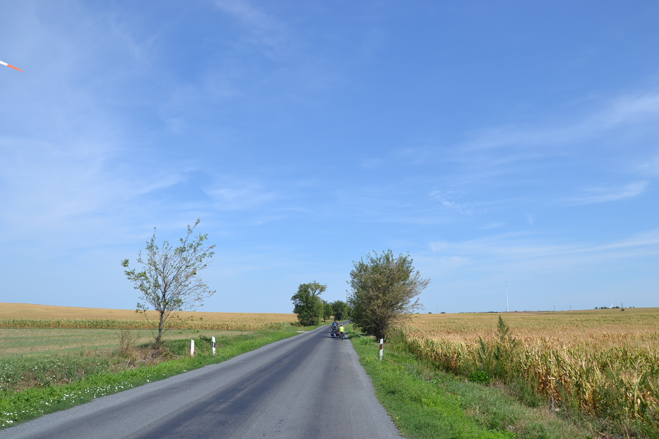 Il fait déjà chaud, très chaud sous les casques de la tribu à roulettes. Nous nous perdons dans la campagne hongroise, croyant apercevoir d’autres vélos au loin, un arbre où nous pourrions nous abriter… Que nenni, nous sommes bien seuls et pas une zone d’ombre.