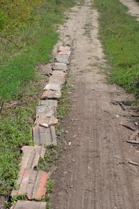 Ici on répare les chemins avec des briques qui mettent nos pneus à rude épreuve.