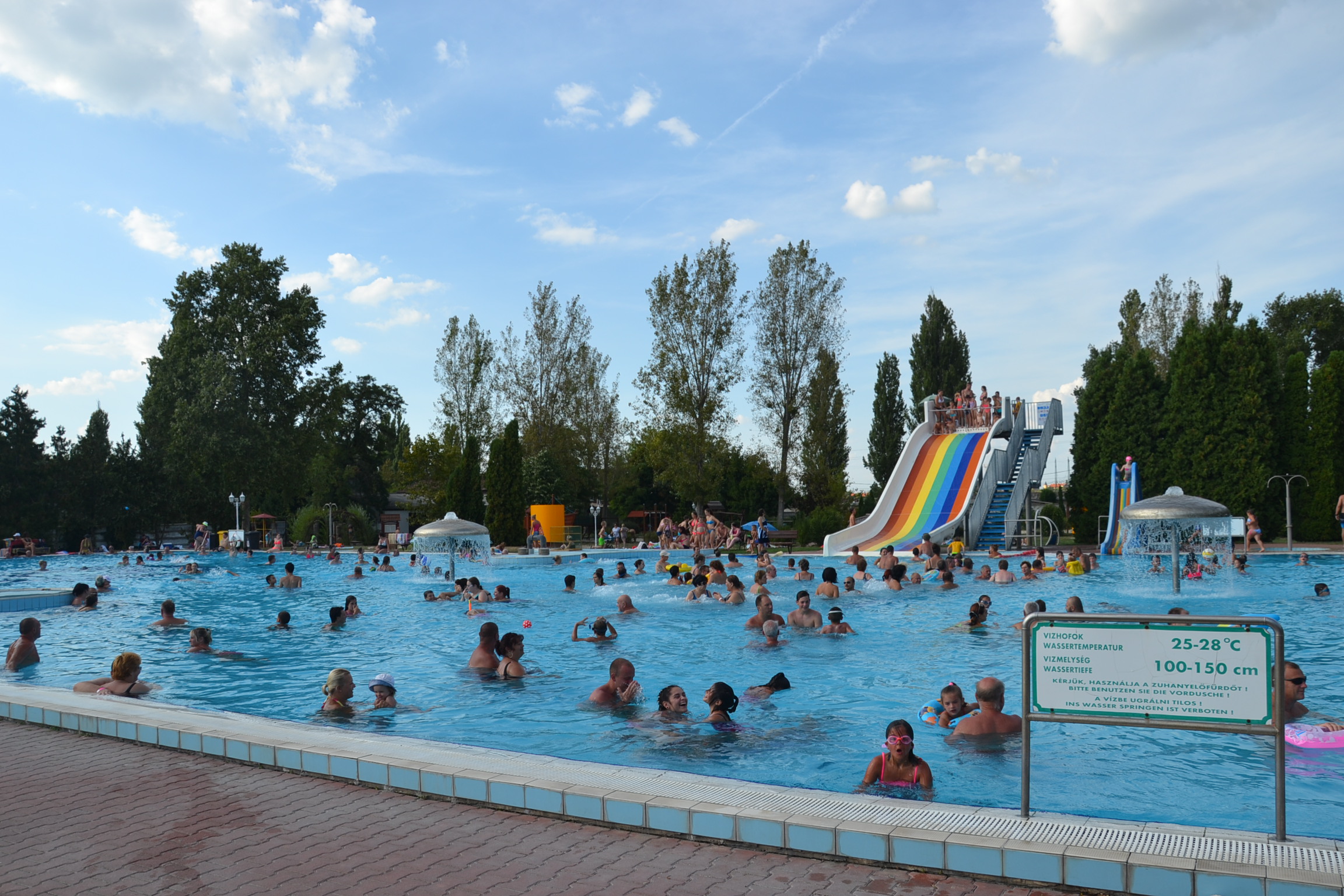 Un grand camping avec des bains hongrois, surpeuplés, sentant le soufre mais il en faut pour tous les goûts!