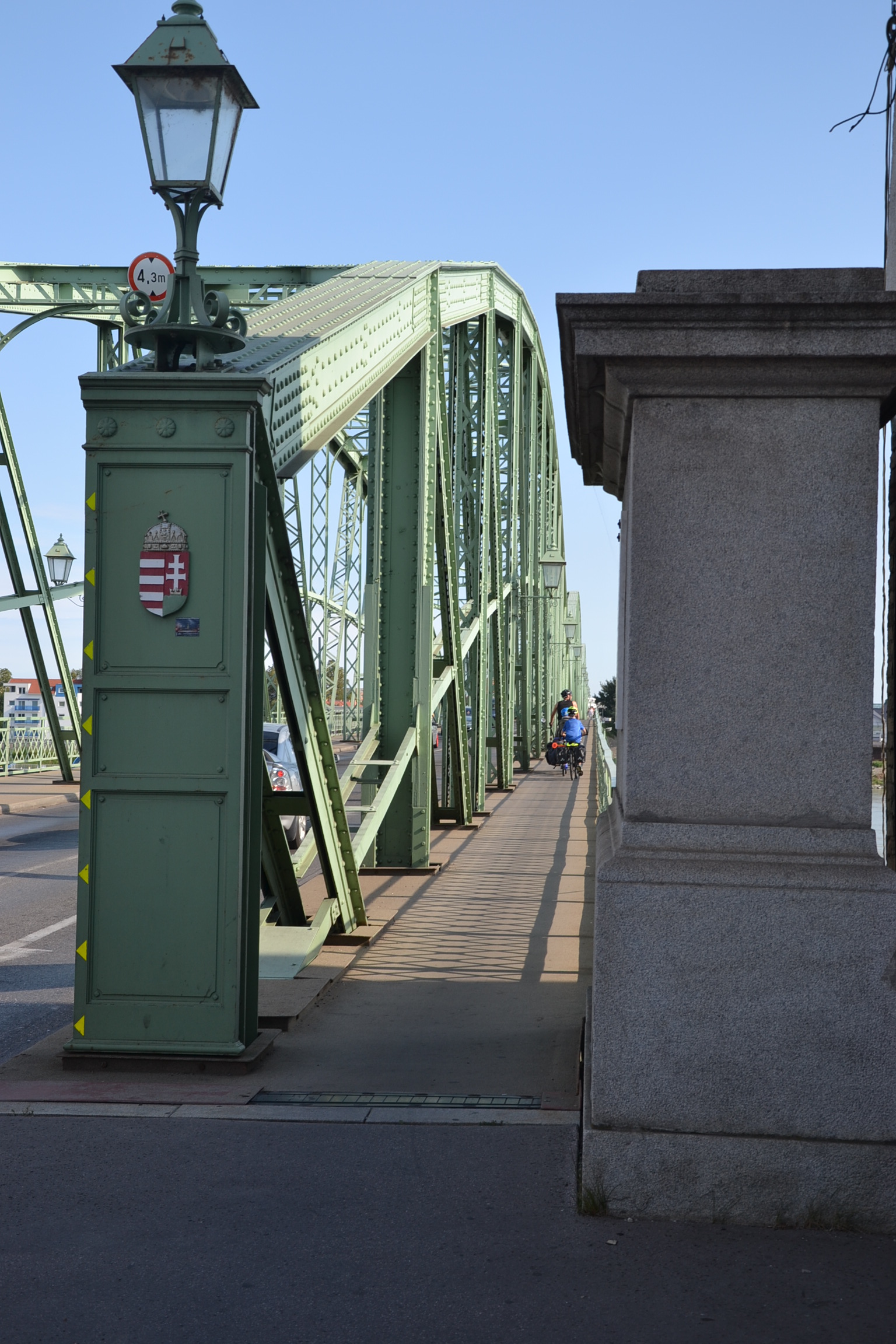 Alors nous quittons Komaróm, traversons le Danube par un pont magnifique et vertigineux, passons la frontière et atteignons la ville jumelle Komarno en Slovaquie.