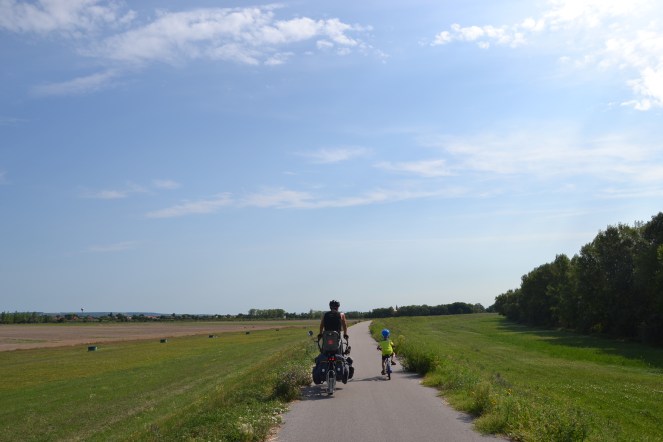 De l’autre côté du pont, on pédale tranquillement vent dans le dos, le temps est clément avec nous, les mystères de la météo.