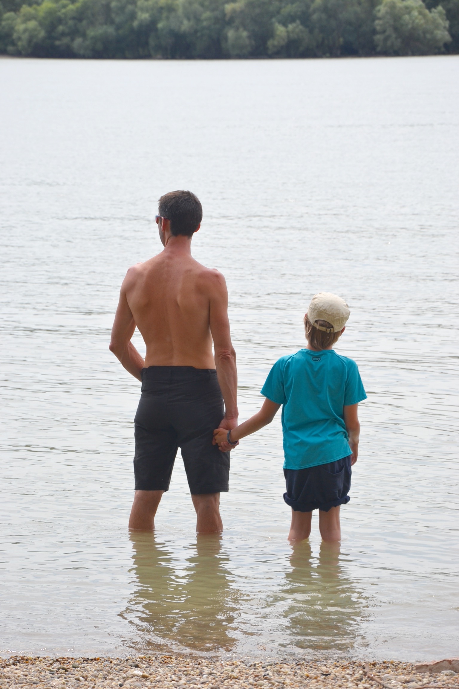 De l’autre côté du pont, les 3 ti-gars trouvent une jolie plage déserte au bord du Danube retrouvé. Nous avions craint qu’il ne ne soit évaporé!