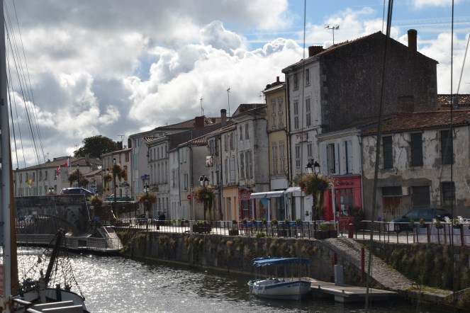 C’est par un canal paisible que nous rejoignons La Rochelle après avoir quitté Marans (non sans avoir encore un peu ri*). Souvenirs de notre première expérience de cyclos, nous franchissons petites écluses et ponts mobiles avec la dextérité de vieux routards.