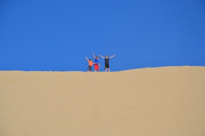 Une dernière descente dans la Dune pour se mettre en jambes et la forêt nous accueille à nouveau lestés de quelques kilos de sable dans nos sacoches.