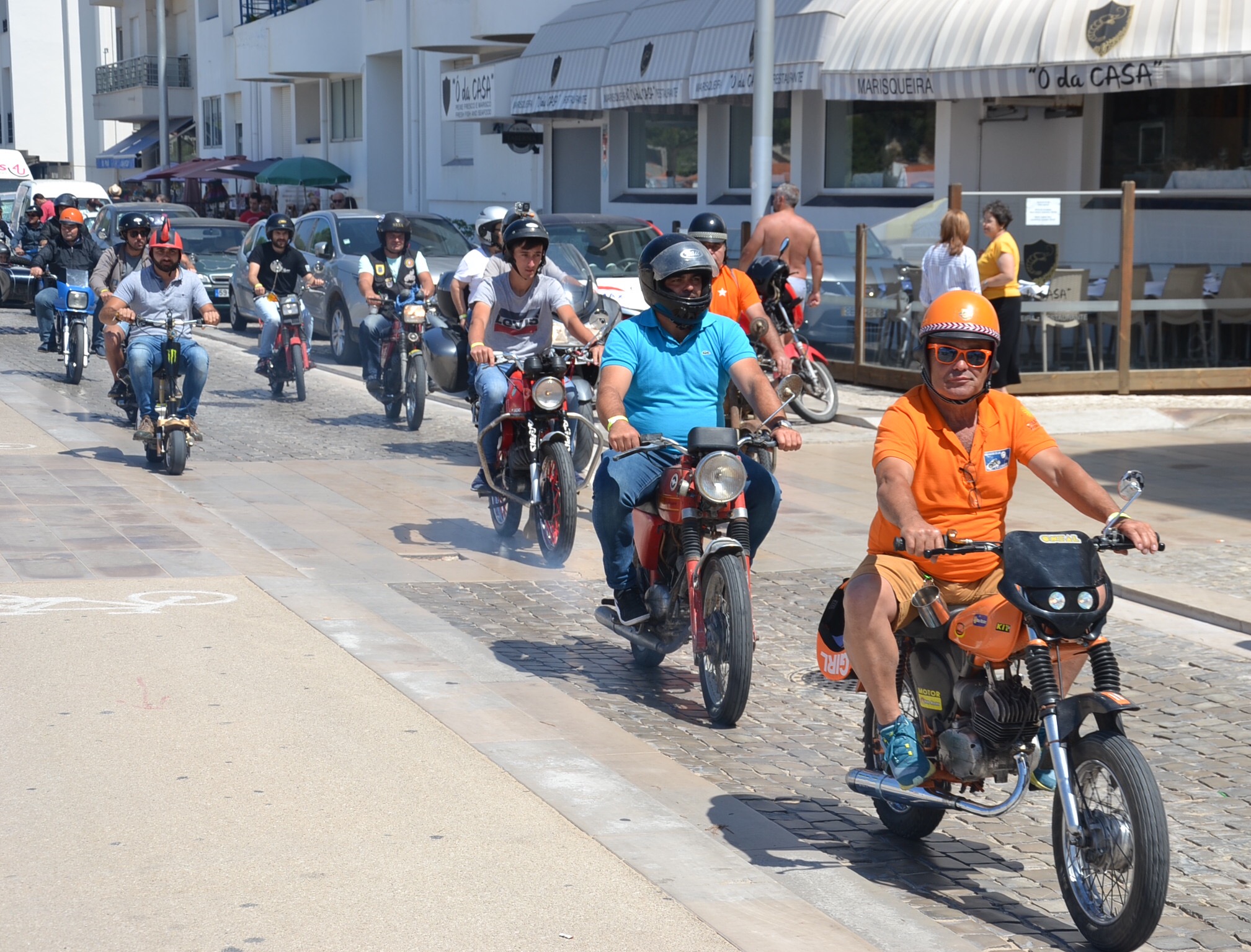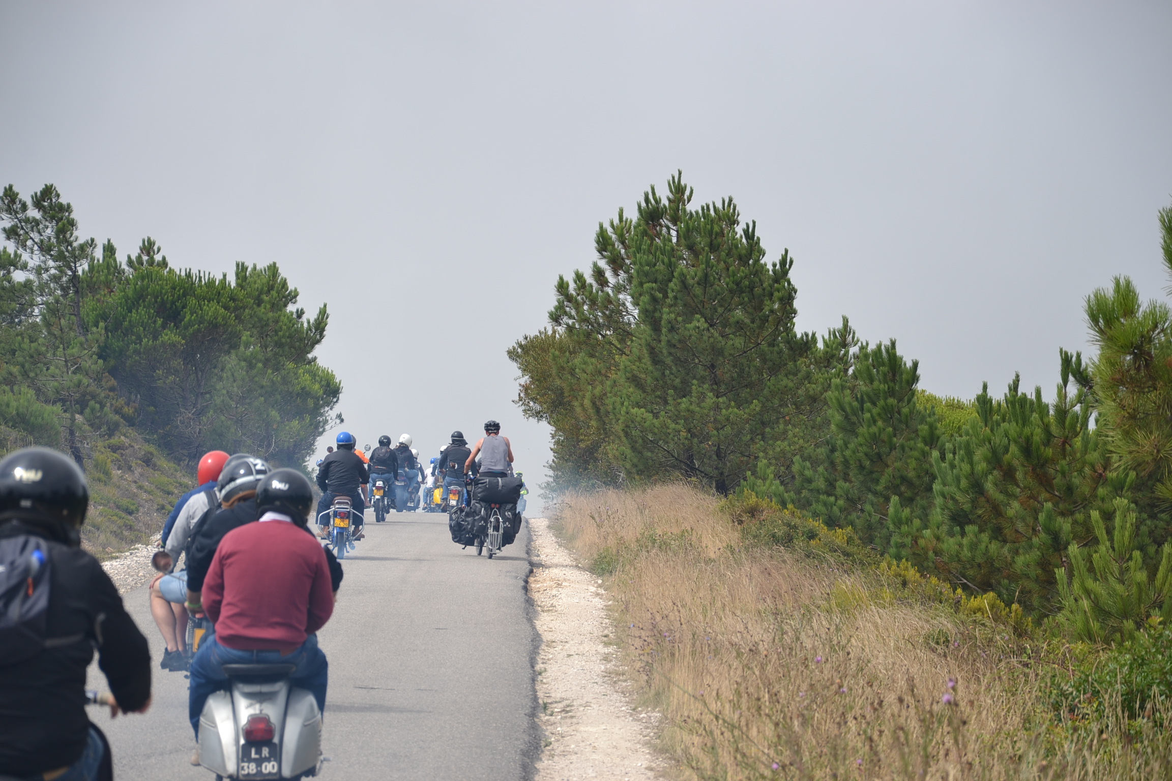 Le dimanche est aussi jour de sortie des engins que l’on laisse habituellement au garage. Dans une des (trop) longues et (trop) nombreuses côtes, nous sommes rattrapés par des dizaines de deux roues, crachant et fumant nous obligeant à nous arrêter pour cracher à notre tour mais sans avoir fumé!
