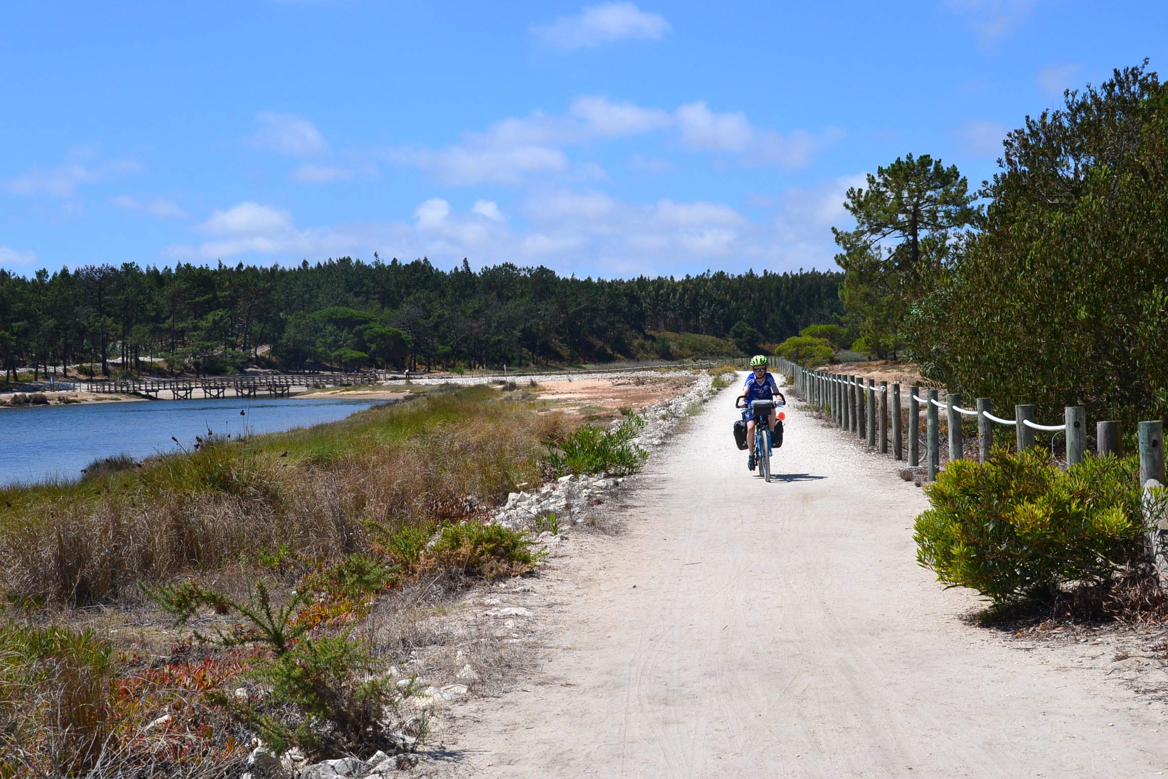 Mais avant de poser nos oreillers, il nous faut pédaler un peu. Pour rejoindre Peniche, nous longeons la lagune d’Óbidos dont nous avions vu l’entrée maritime la veille.