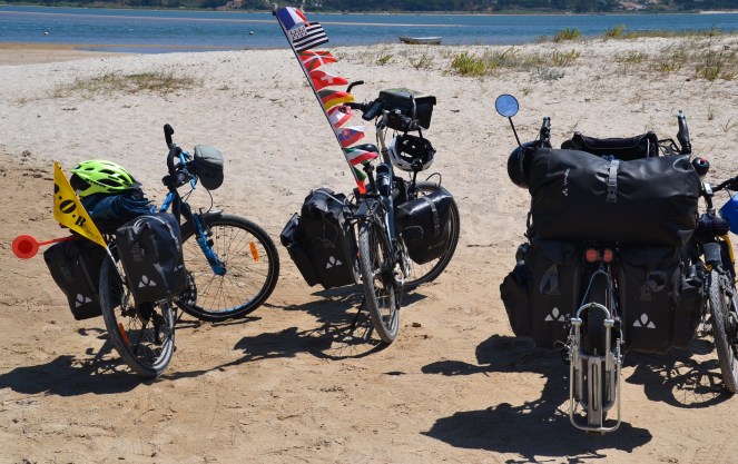 Au Portugal, l’option bivouac ne nous semble pas raisonnable pour plusieurs raisons. Les incendies sont malheureusement très fréquents et le camping sauvage strictement interdit. Les campings municipaux, en plus d’être bon marché (une quinzaine d’euros pour nous 5!) sont bien situés, entretenus et nous y croisons parfois quelques collègues cyclo-maniaques.