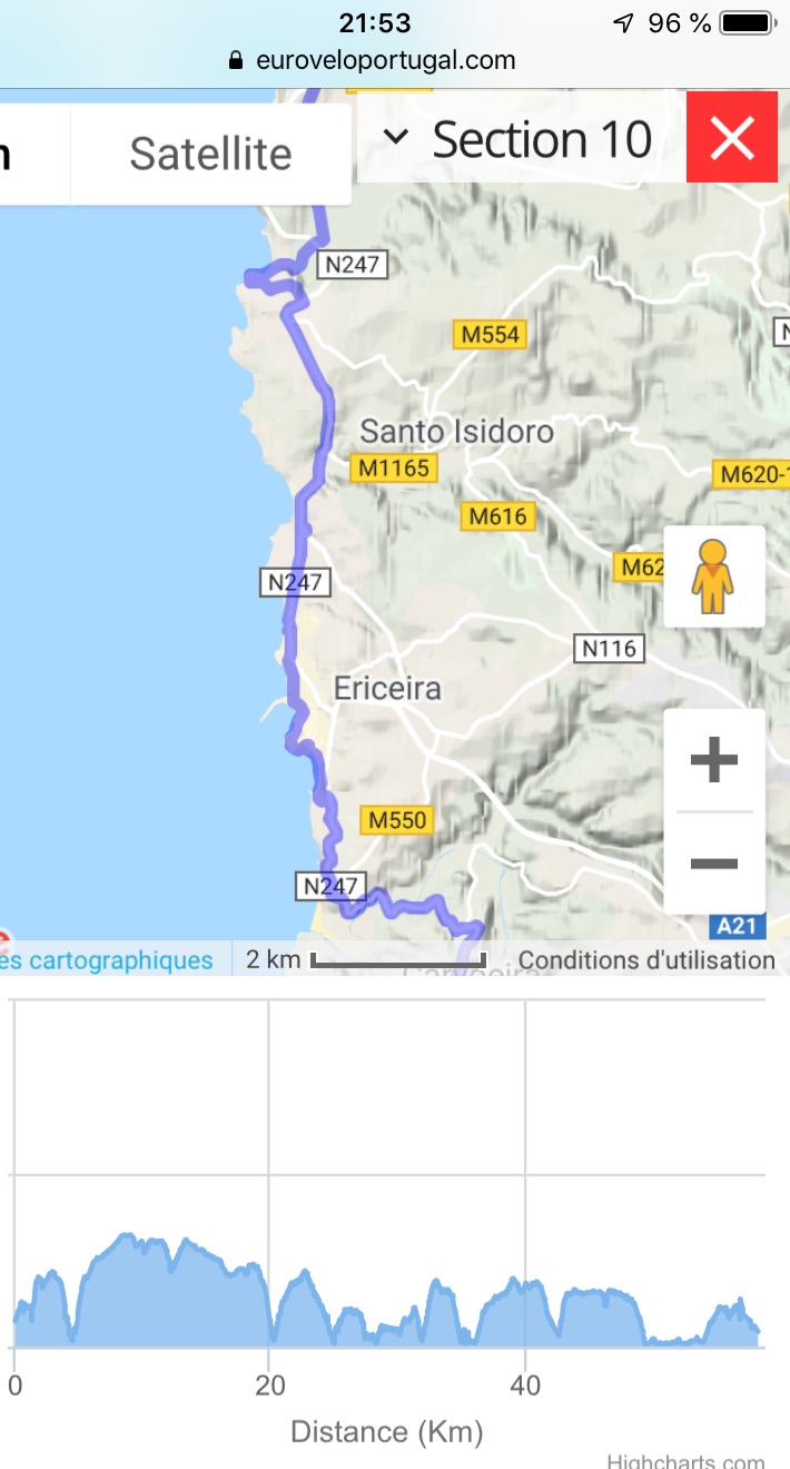 De Santa Cruz à Ericeira – 35 km – vent dans le nez et on ne parle plus de dénivelé dans cette région escarpée!