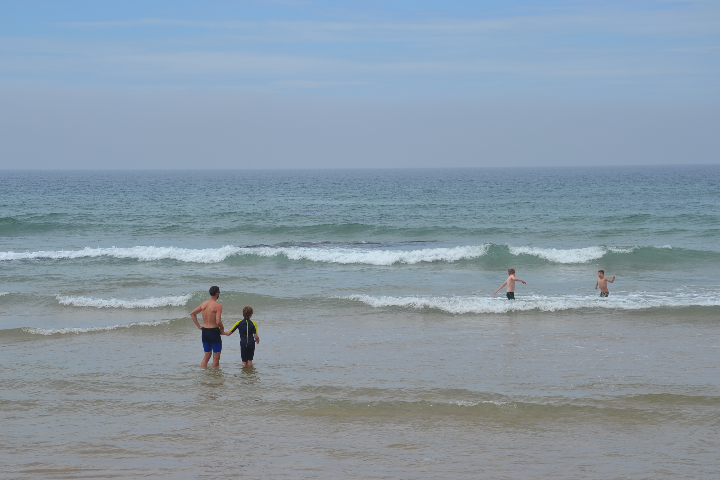 Alors on on redescend pour une pause baignade sur une plage quasiment déserte où seuls des bancs de surfeurs attendent la vague.