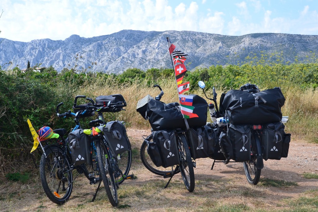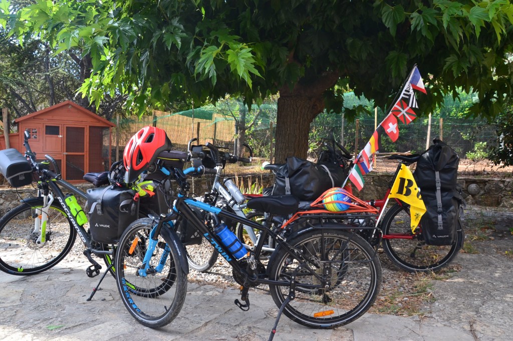 5. Salut les globe trotters!! Heureux de vous voir repartis sur une grande aventure!! Vous etes notre thermomètre COVID!! La belle vie doit reprendre!! Bravo a toutes ces cuisses et ces mollets!! Les jeunots parlez nous un peu du chargement de vos velos…jai l’impression que les parents ne vous ont pas épargnés!!! Combien de kilos chacun???? Belle route et soyez prudents y a des c….en voiture….