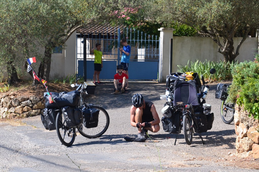Un premier pit stop à 3km de la maison pour réparer la chaîne du tandem, un deuxième 100m plus loin pour re-réparer la même chaîne… les 20 premiers km seront sans aucun doute les plus longs du voyage!