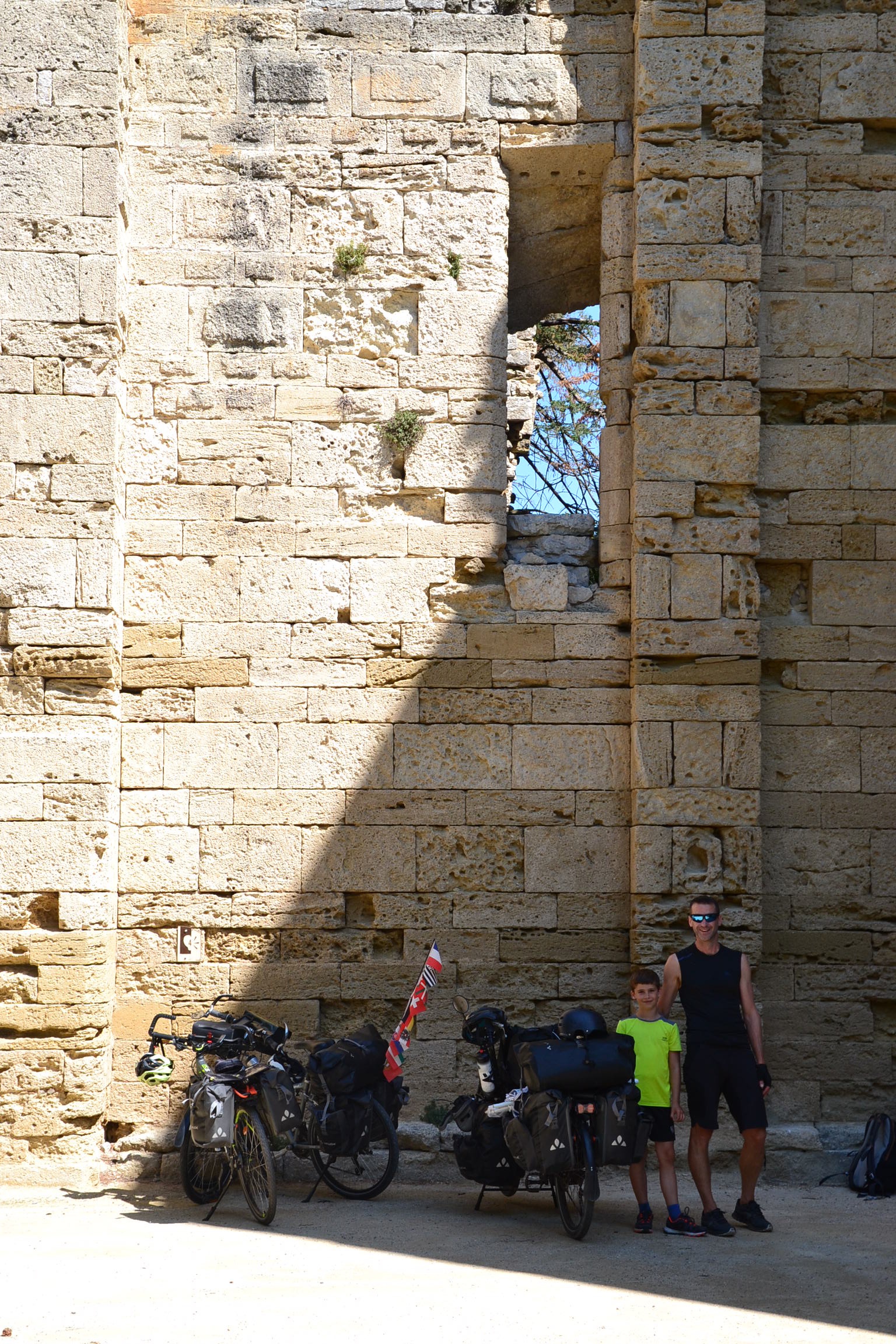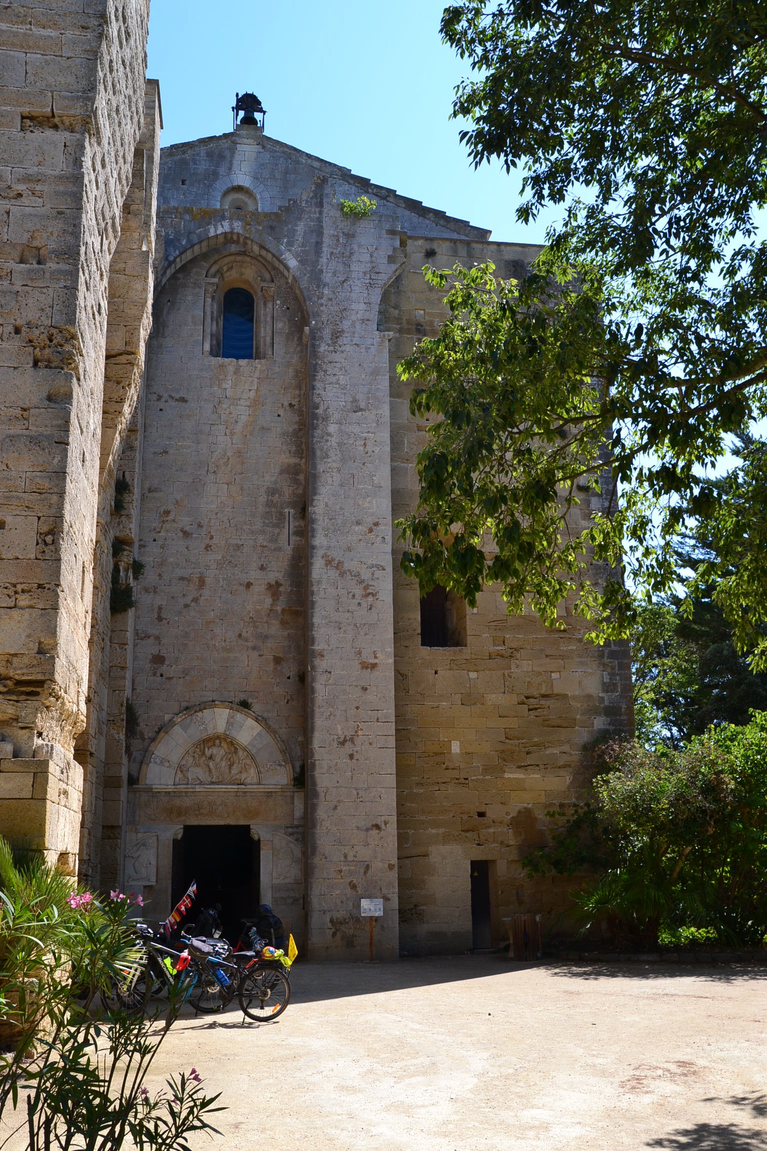 Un arrêt pour nourrir les moustiques de la cathédrale St Pierre de Maguelone posée sur un bras de terre au milieu des étangs,