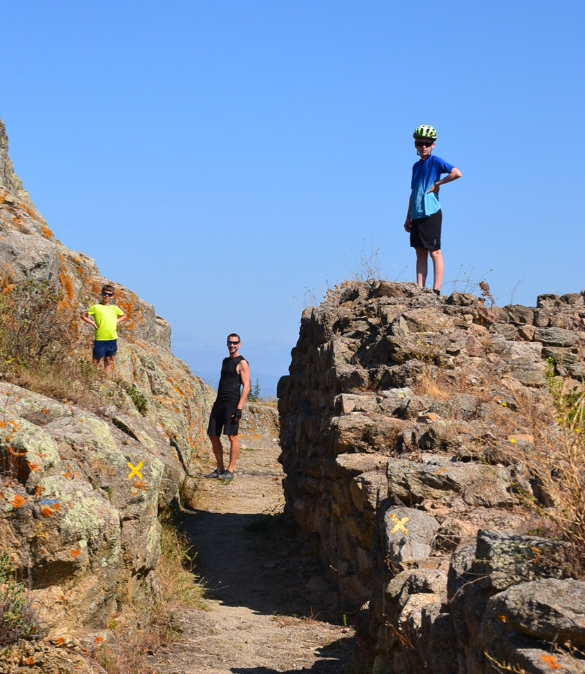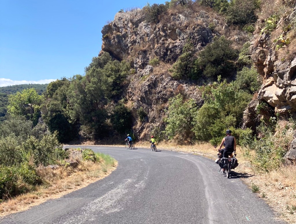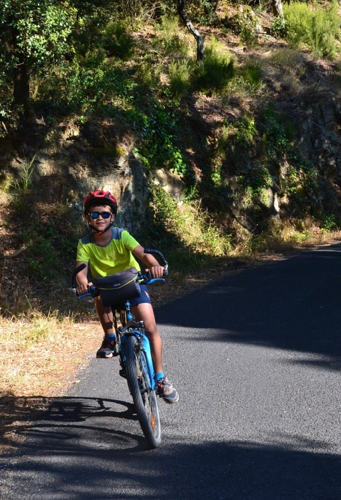 Nous poursuivons notre chemin sur la frontière: en zigzaguant Matthieu réussit l’exploit de pédaler en même temps en France et en Espagne !