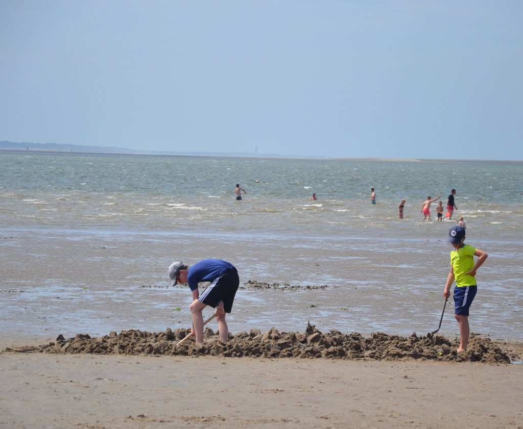 Une traditionnelle pause à la plage pour goûter l’eau, creuser un trou, repartir avec une deuxième pelle et discuter avec une secouriste ayant vécu à la Ciotat il y a quelques années.