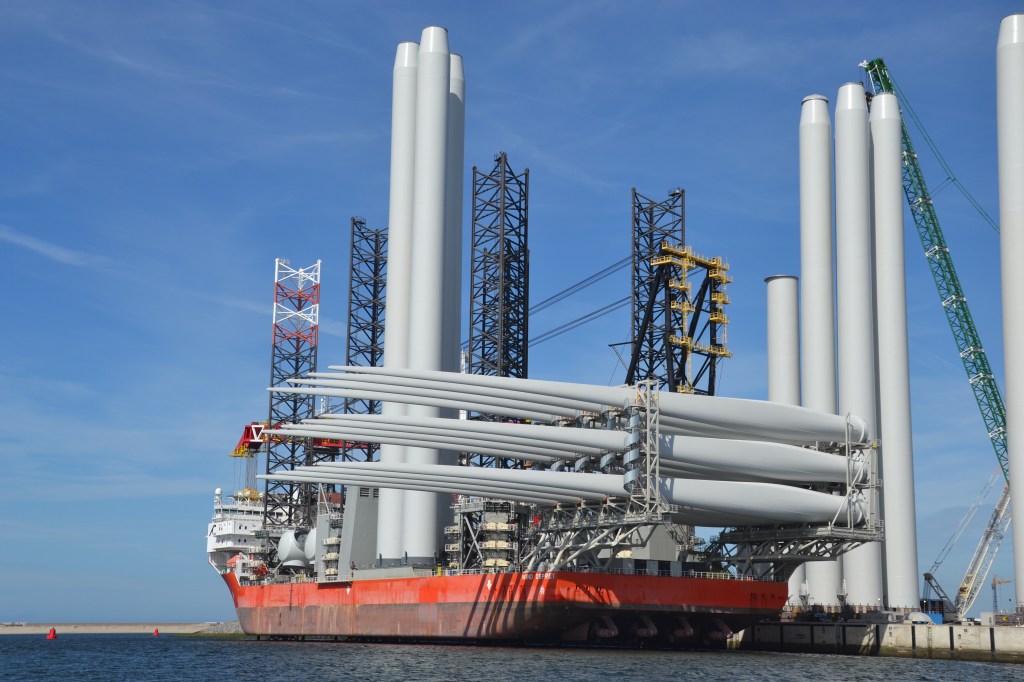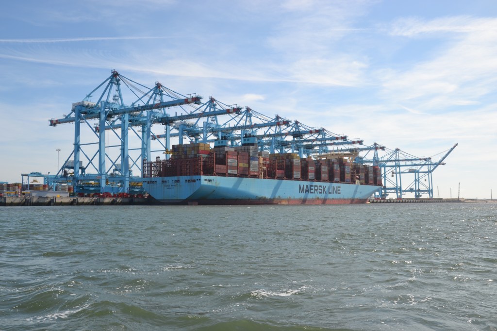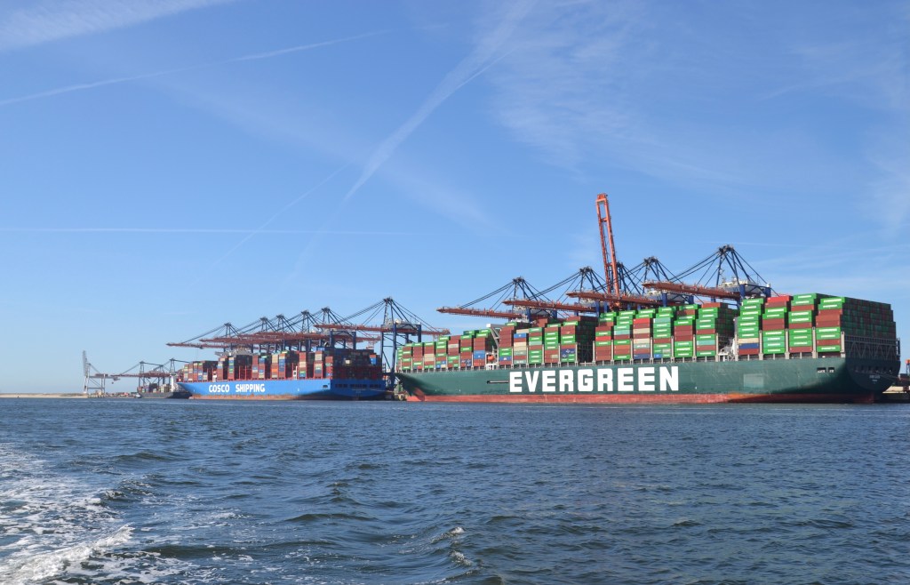 Petite cerise sur le gros gâteau: la traversée en ferry d’une heure se fait au milieu de ce port où nous croisons des porte-containers, des super-tankers, des plateformes pour éoliennes…