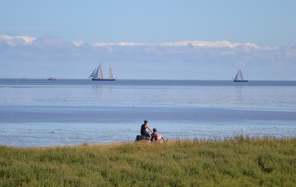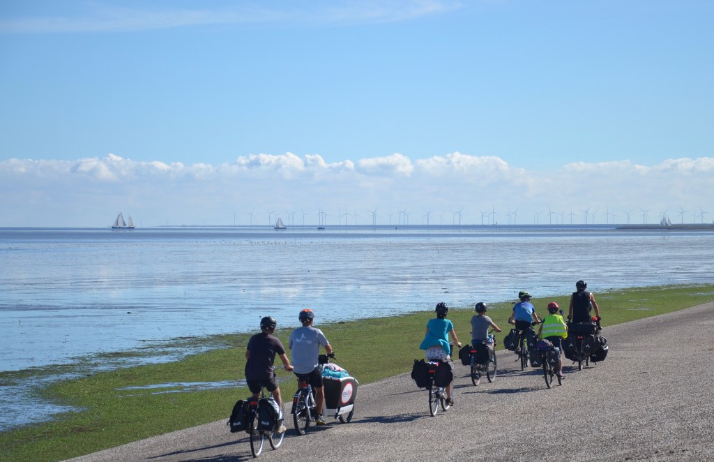 Mais avant de trouver notre camping du jour, nous pédalons le long de la Kustroute/Eurovélo 12 jusqu’à Den Oever, point de départ de la fameuse digue de fermeture, l’Afsluitdijk.