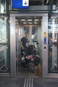 Tout content d’avoir réussi à mettre le tandem dans l’ascenseur, on n’a même pas essayé de faire rentrer tout le convoi!