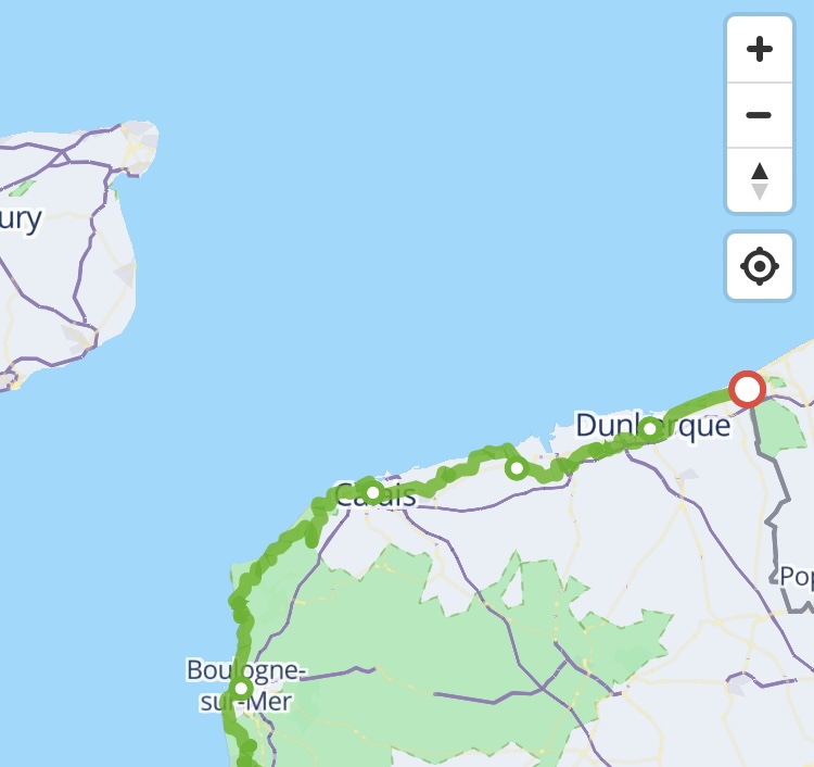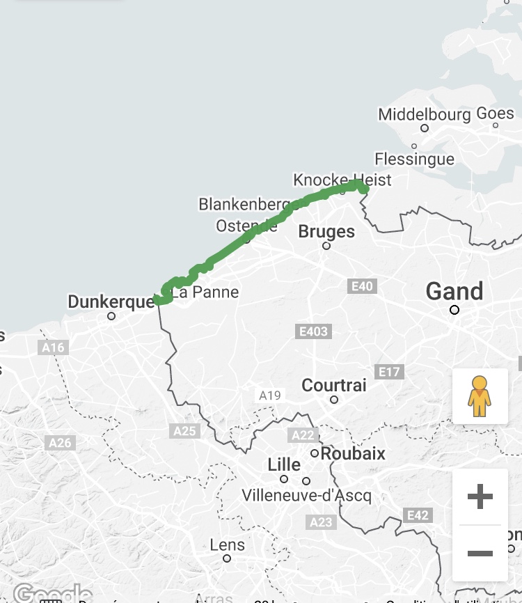 Pour celles et ceux qui ont suivi toute l’histoire, nous sommes effectivement déjà passés à Ostende, mais cette fois-ci nous pédalons vers le Sud, vent dans le dos!