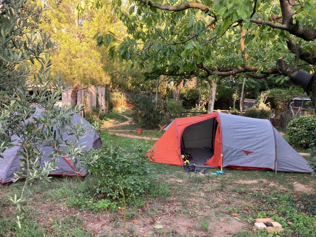Encore un pont pour retraverser le Rhône, et nous voilà arrivés à notre premier campement chez l’habitant.