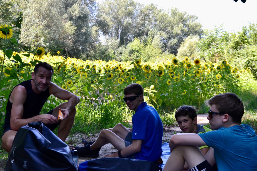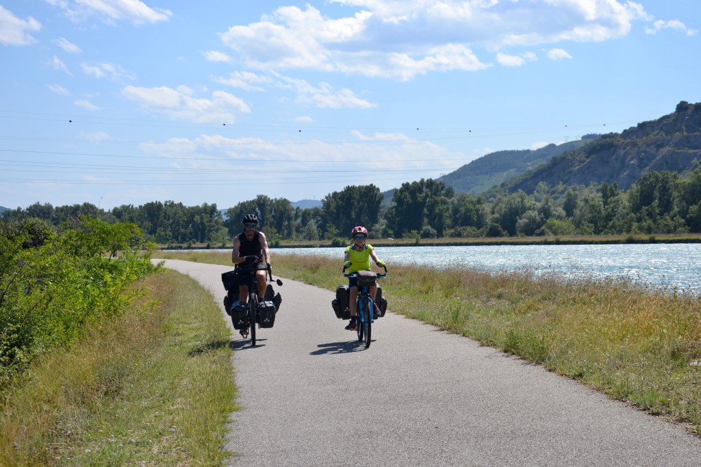Et si depuis 3 jours, nous pédalions sous une chaleur déjà bien accablante, au cœur de la vallée du Rhône le thermomètre s’emballe… 39, 40, 41, 42 degrés… heureusement le mistral souffle dans le bon sens nous donnant des ailes.
