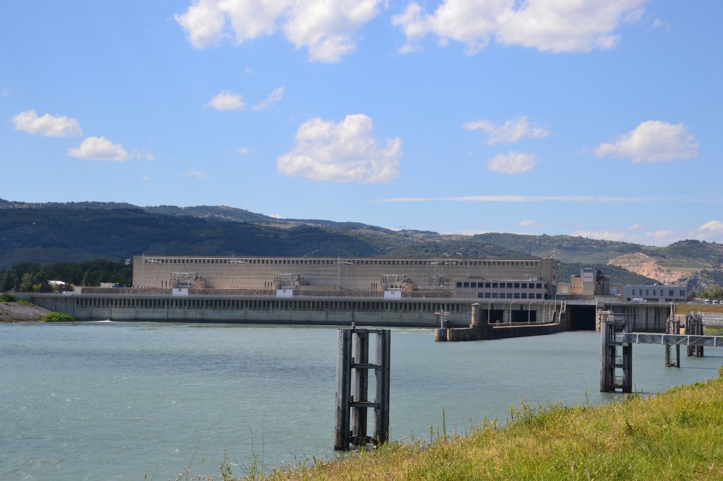 Si le Rhône nous ravit par ses paysages variés, il n’en est pas moins un important pourvoyeur d’énergie. La Compagnie Nationale du Rhône et ses nombreuses centrales hydroélectriques jalonnent notre parcours et nous rappelle à nos besoins quotidiens.