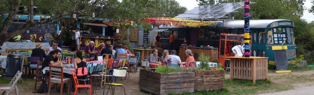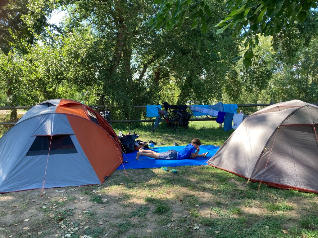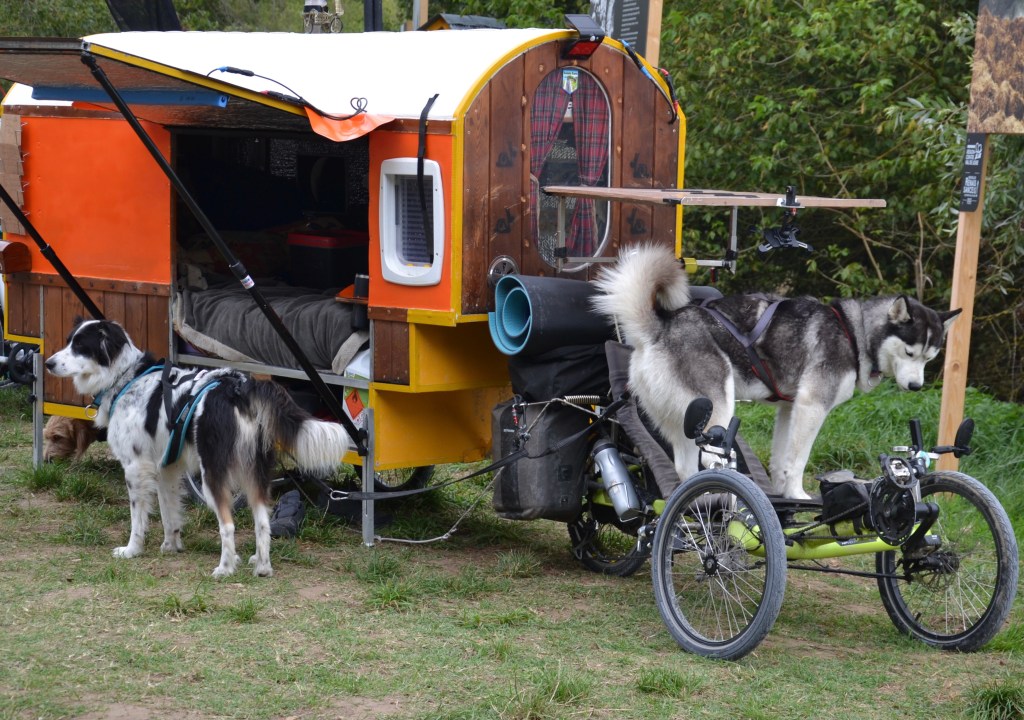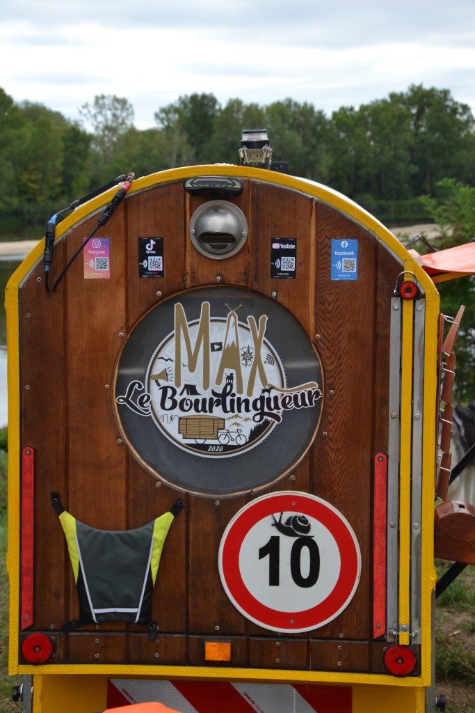 L’endroit est original et agréable, nous prolongeons la pause… pour repartir en compagnie de Max le Bourlingueur parti sur les routes depuis 2020. Une mini-roulotte, un vélo couché, deux chiens et en avant la vie de nomade!