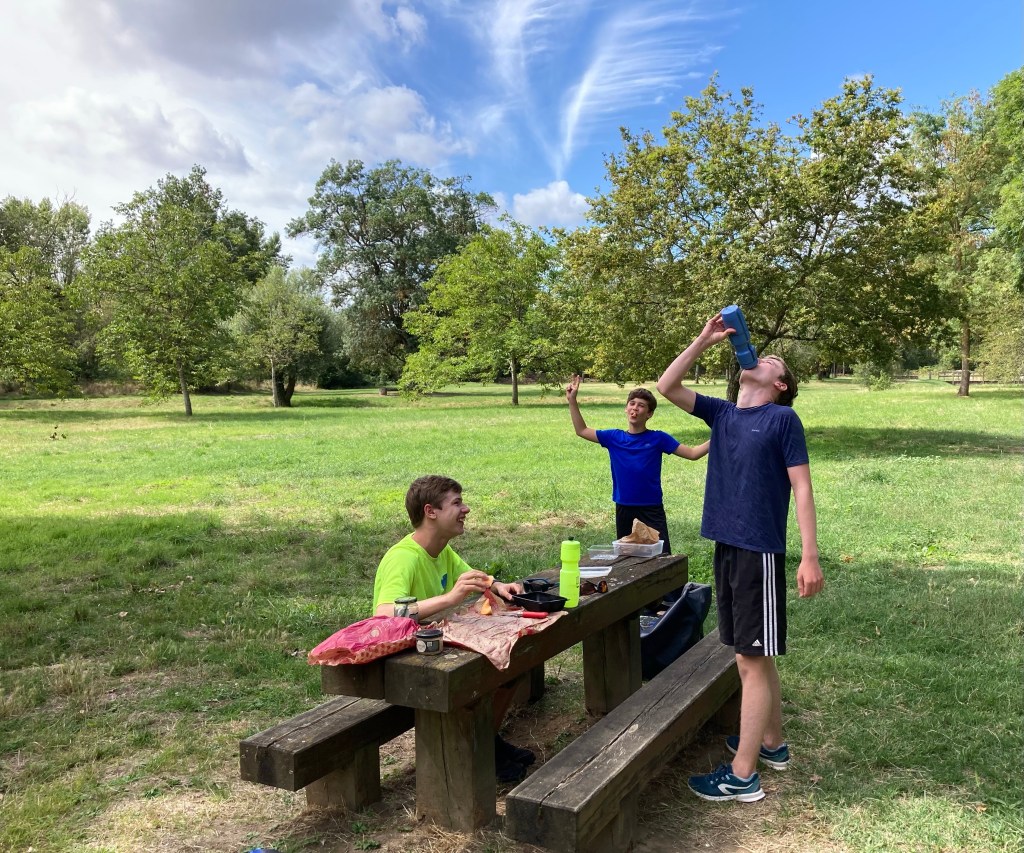 La traditionnelle pause pique-nique sur l’île de la Métairie est l’occasion de quelques pitreries pour un public qui n’est plus à conquérir.