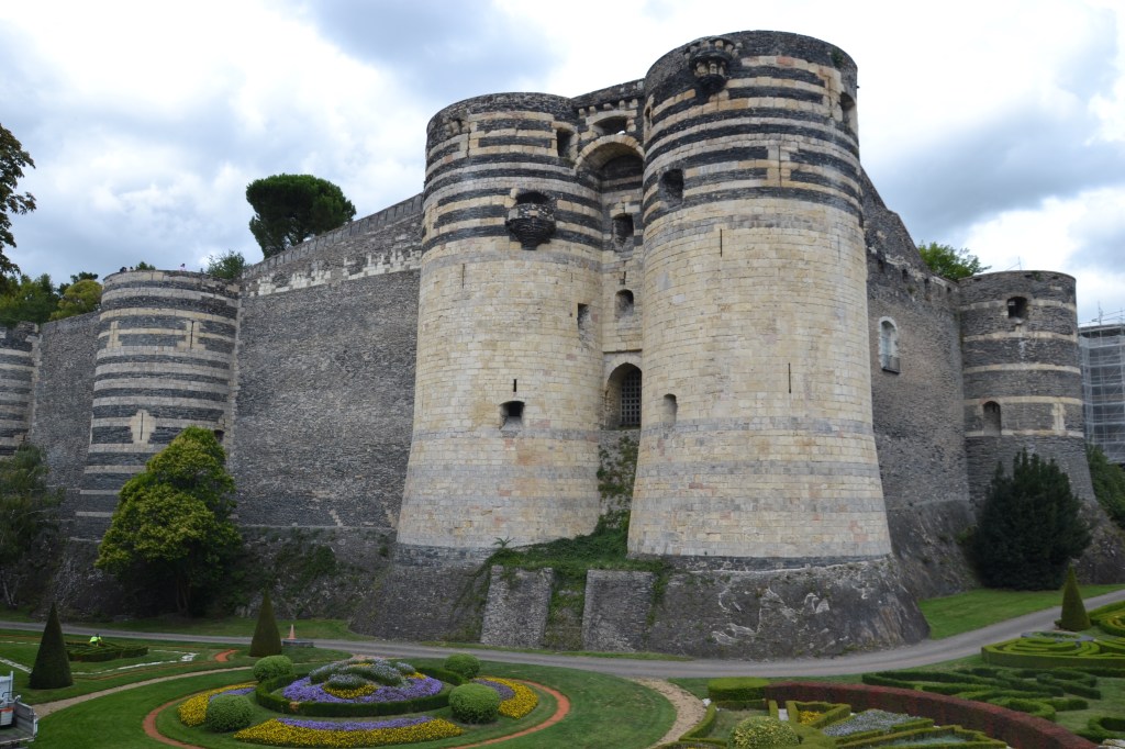 Un petit tour dans Angers et nous voilà aux pieds de son château très différent des précédents.