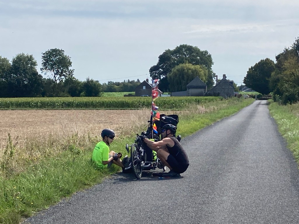 Le handbike fait à nouveau des siennes mais maintenant que nous connaissons l’origine du problème les mécanos n’ont plus qu’à sortir la trousse à outils!