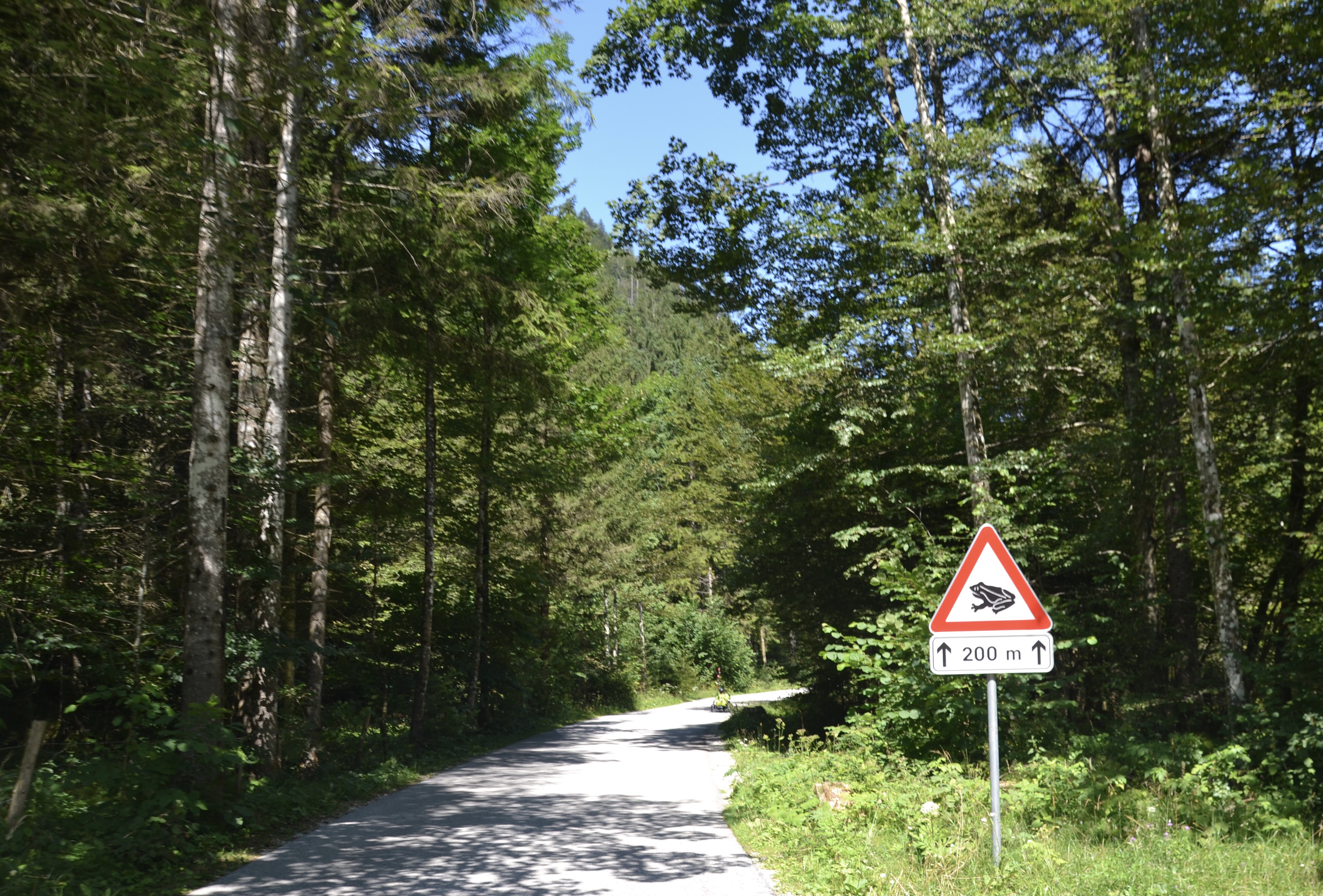 Si l’ours est l’emblème de la Slovénie et que le parc national du Triglav en compte plusieurs centaines, nous n’en avons pas croisé un seul, ni même un batracien pourtant bien signalé sur ce panneau!