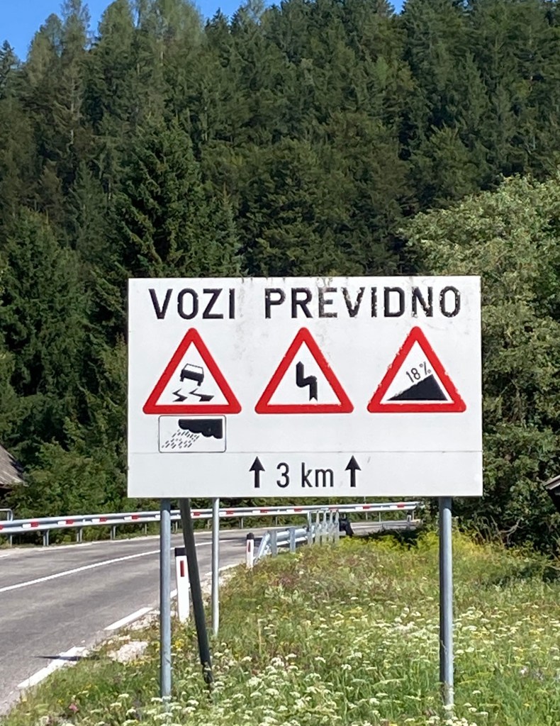 1. Tu oublies de préciser une femme avec un vieux vélo et 20kgs de sacoches 😅 C’est donc toi le lutin slovène qui sème des panneaux 18% sur notre chemin 😂