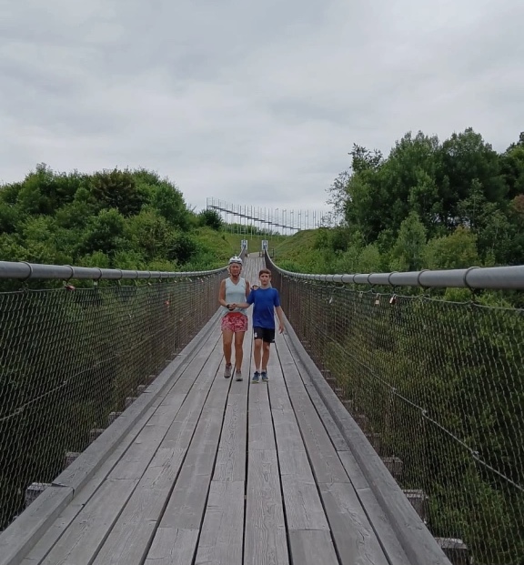 J’ai toujours eu le vertige et à vélo sur un pont c’est encore pire! Celui-ci était avec des lattes espacées et se balançait 😱