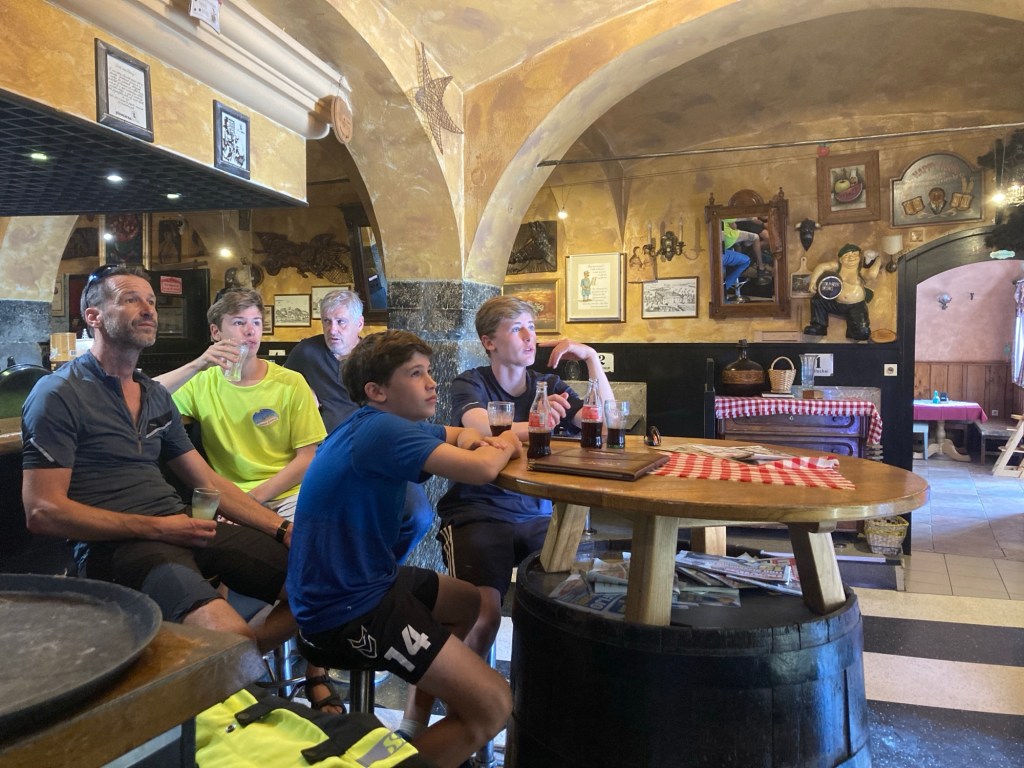 Une petite pause dans la descente nous amène dans un café où la demi-finale d’escalade des Jeux olympiques est retransmise ! Nous applaudirons les exploits de la grimpeuse slovène en tête de la compétition.