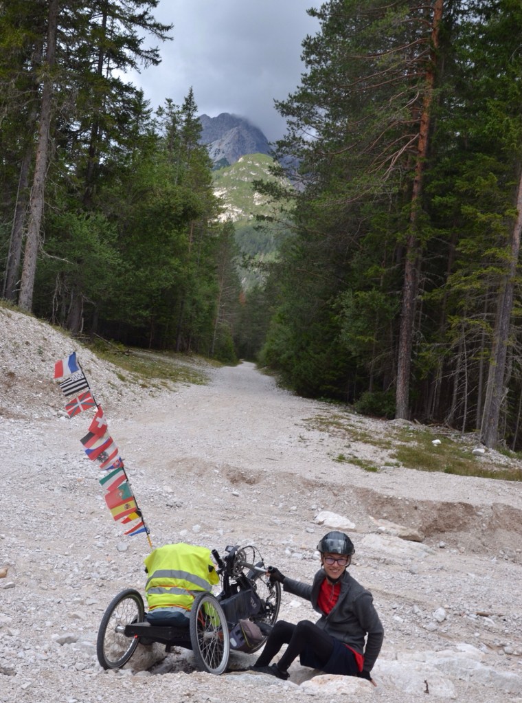 Un deuxième dérapage incontrôlé du handbike aurait pu faire verser son conducteur dans un cours d’eau certes à sec mais bien rocailleux. Un rocher est venu miraculeusement bloquer la roue permettant à Quentin de nous attendre sagement en retenant son vélo!