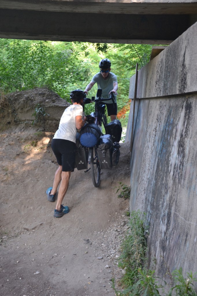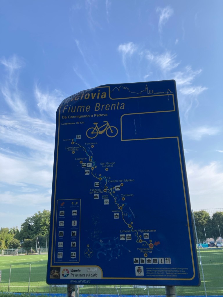 Depuis que nous avons quitté le tracé Munich-Venise, nous construisons notre propre itinéraire à partir de bouts de pistes cyclables recensées sur le site national italien. Aujourd’hui, ce sera en partie la cyclovia Fiume Brenta.