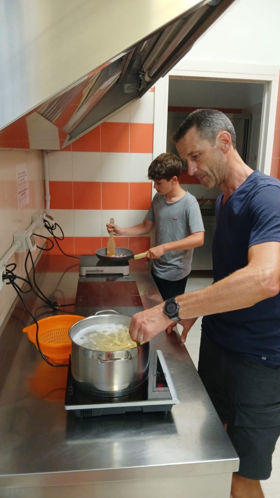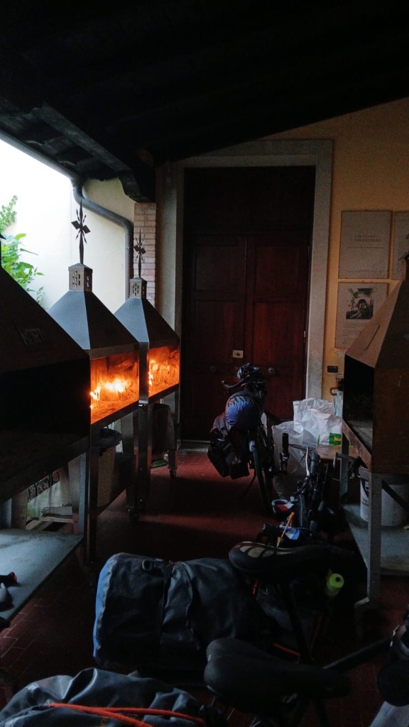 Nous arrivons en tout début d’après-midi et nous arrêtons dans une auberge pour pèlerins. Cet endroit chaleureux et paisible accueille les randonneurs et cyclistes de passage et a une mission sociale de réinsertion. Comble du luxe, nous serons 5 dans un dortoir pour 10 et aurons notre propre salle de bains!
