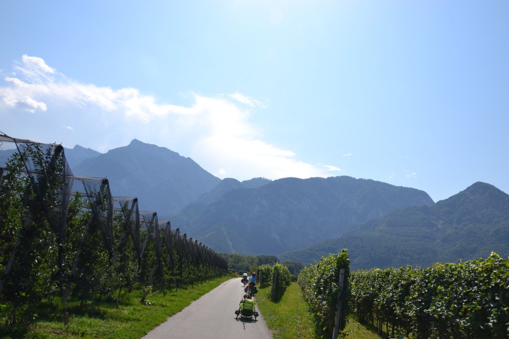 Plus l’on remonte vers le nord, plus l’italien se mélange à l’allemand, les panneaux sont à nouveau traduits dans les deux langues. Malheureusement, le code de la route est toujours italien et il ne semble pas inclure la priorité aux passages piétons ou cyclistes !