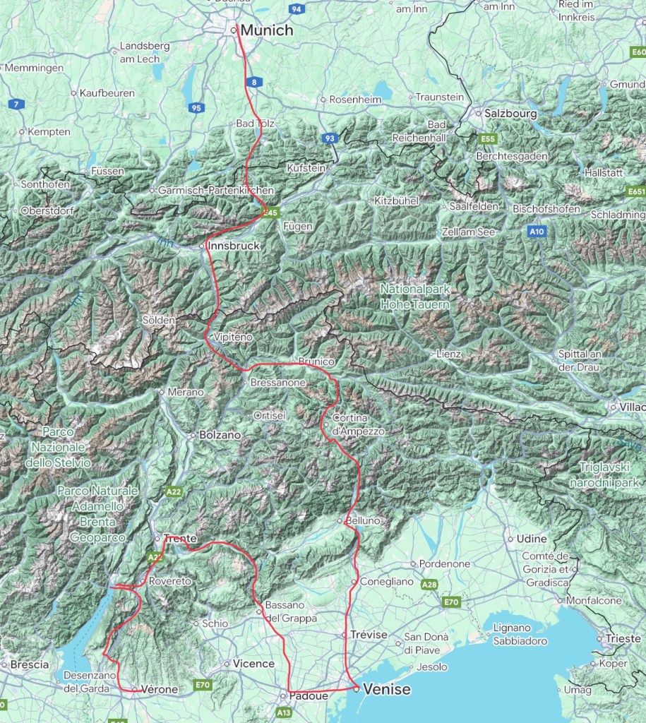Surpris par le réseau cyclable italien, protégé, dense, très bien indiqué, il nous a permis d’accéder à des endroits préservés de la foule touristique et de réajuster notre itinéraire autant que de besoin pour répondre à nos envies du moment.